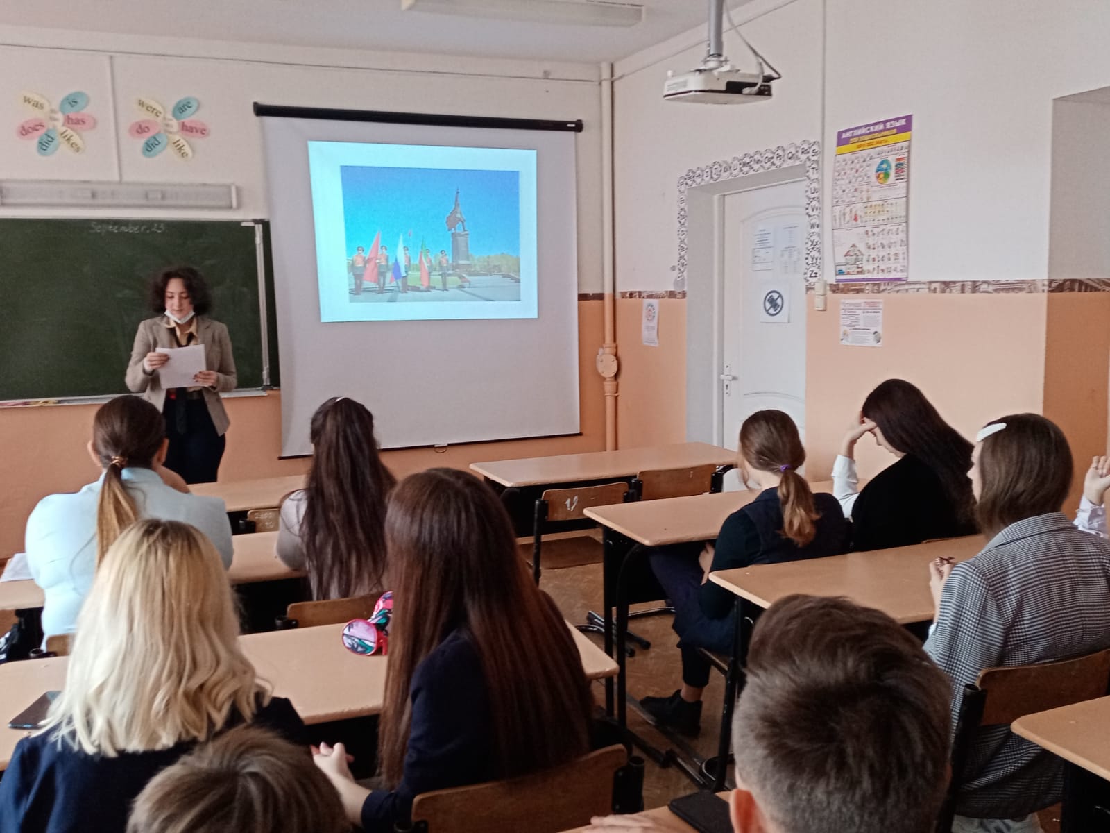 9 сыйныф укучылары (татар төркеме) Бөек Ватан сугышы каһарманы Гази (Газетдин) Казыйхан улы Заһитовның тууына 100 ел (1921–1953) тулу унаеннан аның турында сыйныфташларына сөйләделәр. Ул – 1945 елның 30 апрелендә рейхстаг гөмбәзенә беренче булып Җиңү байрагы элүче .Учащиеся 9 класса татарской группы ознакомили одноклассников с героем Великой Отечественной войны Гази (Газетдином) Казыхановичем Загитовым (1921–1953). Он 30 апреля 1945 года первым водрузил Знамя Победы на куполе рейхстага. -