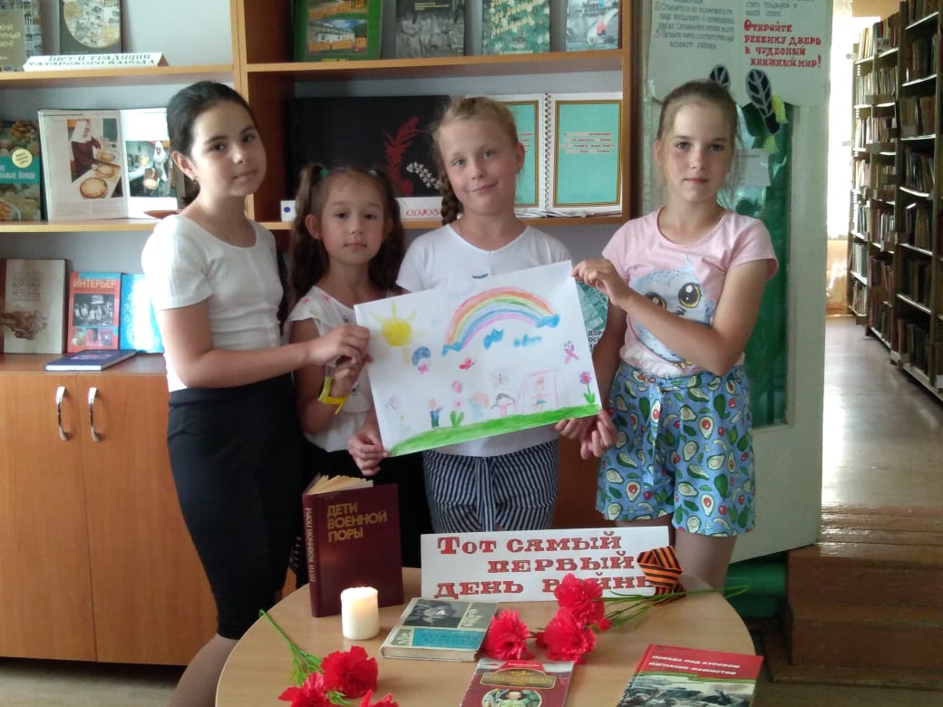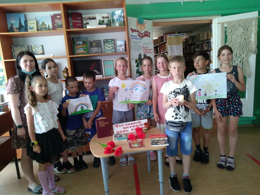 Война, это, наверное, самое страшное слово. Великая Отечественная война 1941-1945 гг. была выиграна великой ценой. Цена - жизни смелых солдат, ветеранов, наших защитников. Мы не должны забывать их подвиг.22 июня, в День 80-летия начала Великой Отечественной войны, ребята пришкольного лагеря «Солнышко» посетили филиал №2 городской библиотеки. Хайруллина Эльза Владимировна рассказала о детях войны, об их тяжелой судьбе.В День памяти и скорби воспитанники лагеря читали стихи и пели песни о войне, рассказывали о своих прадедушках - участниках ВОВ. Минутой молчания почтили память всех, кто сложил свою голову на алтарь Победы. В завершении встречи ребята рисовали рисунки на тему «Мирное счастливое детство». -