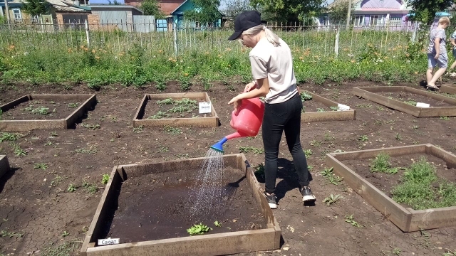 Работой учащихся руководит Зарипова А. Г., которая обучает ребят правильным и безопасным приемам работы, обеспечивает соблюдение школьниками правил техники безопасности. Работа на пришкольном участке требует очень большой отдачи, терпения и, несомненно, материальных затрат. Школа обеспечивает учащихся сельхозинвентарём (лопаты, ведра, мотыги). И не стремление к наградам, а любовь к своей школе движет учениками и педагогами нашего коллектива. -