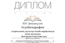 2021 елның 1 гыйнвары көнне XIV #ӘДӘБИМАРАФОН башланып китте. Ул яңа шигарь - #МИНМИЛЛӘТКИЛӘЧӘГЕ девизы астында үтте. Әдәби марафоннның монысы - аеруча үзенчәлекле. Ул - Татарстанда туган телләр һәм халыклар бердәмлеге елына багышланды. Татар теле һәм әдәбияты укытучысы Мөхетдинова Р.Ф. әдәби марафонда катнашып, финалист булды.1 января 2021 года стартовал XIV литературный марафон. Он прошел под новым лозунгом - #МИНМИЛЛӘТКИЛӘЧӘГЕ. Этот литературный марафон-особенный. Он был посвящен Году родных языков и народного единства в Татарстане. Учитель татарского языка и литературы Мухутдинова Р. Ф. приняла участие в литературном марафоне и стала финалисткой. -