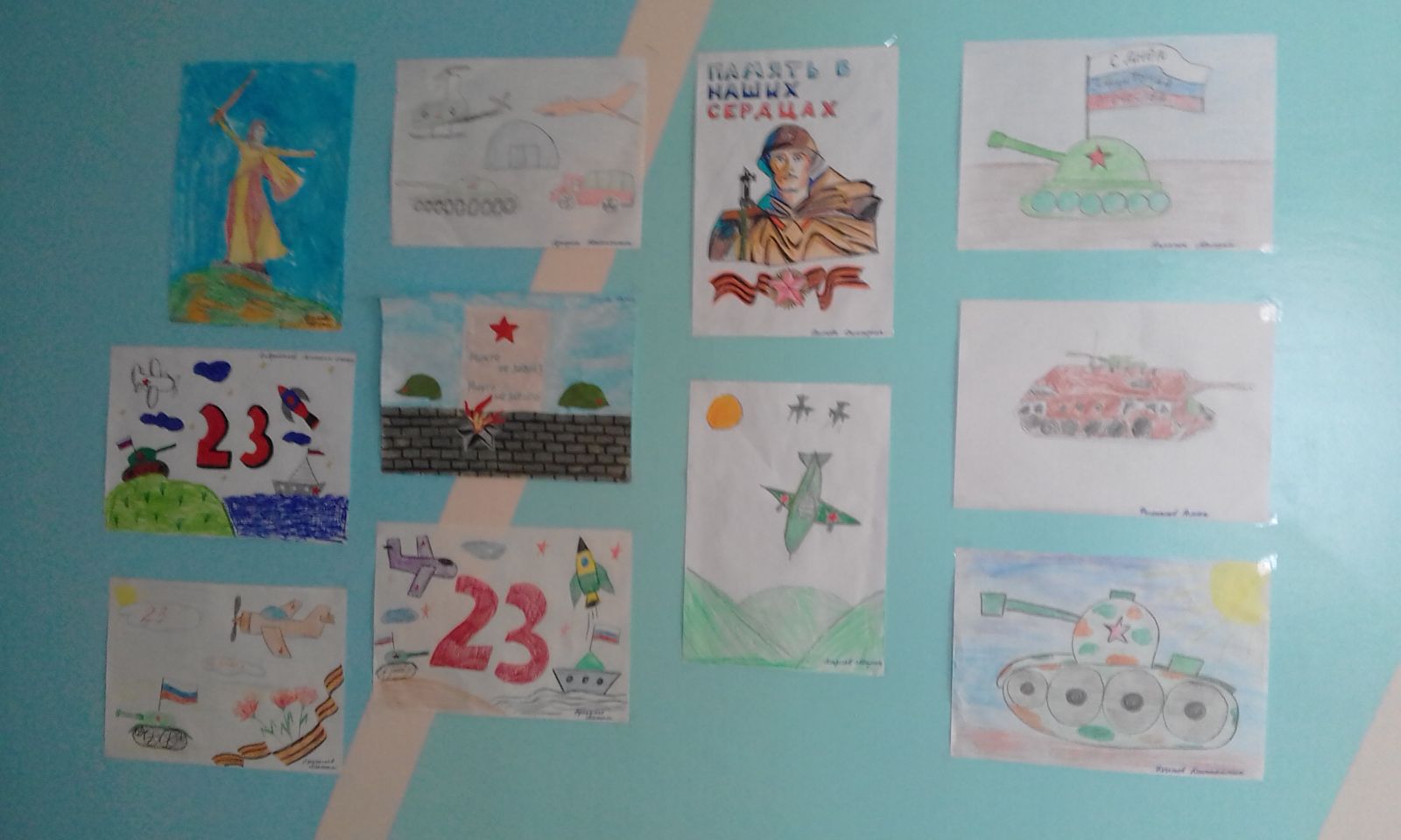 В честь праздника мальчишек, защитников Отечества в нашей школе проходит конкурс рисунков и уголков мужества. Учащиеся 2 класса активно принимают участие: нарисовали рисунки к дню защитника Отечества, смастерили поделки оформили уголок мужества. -