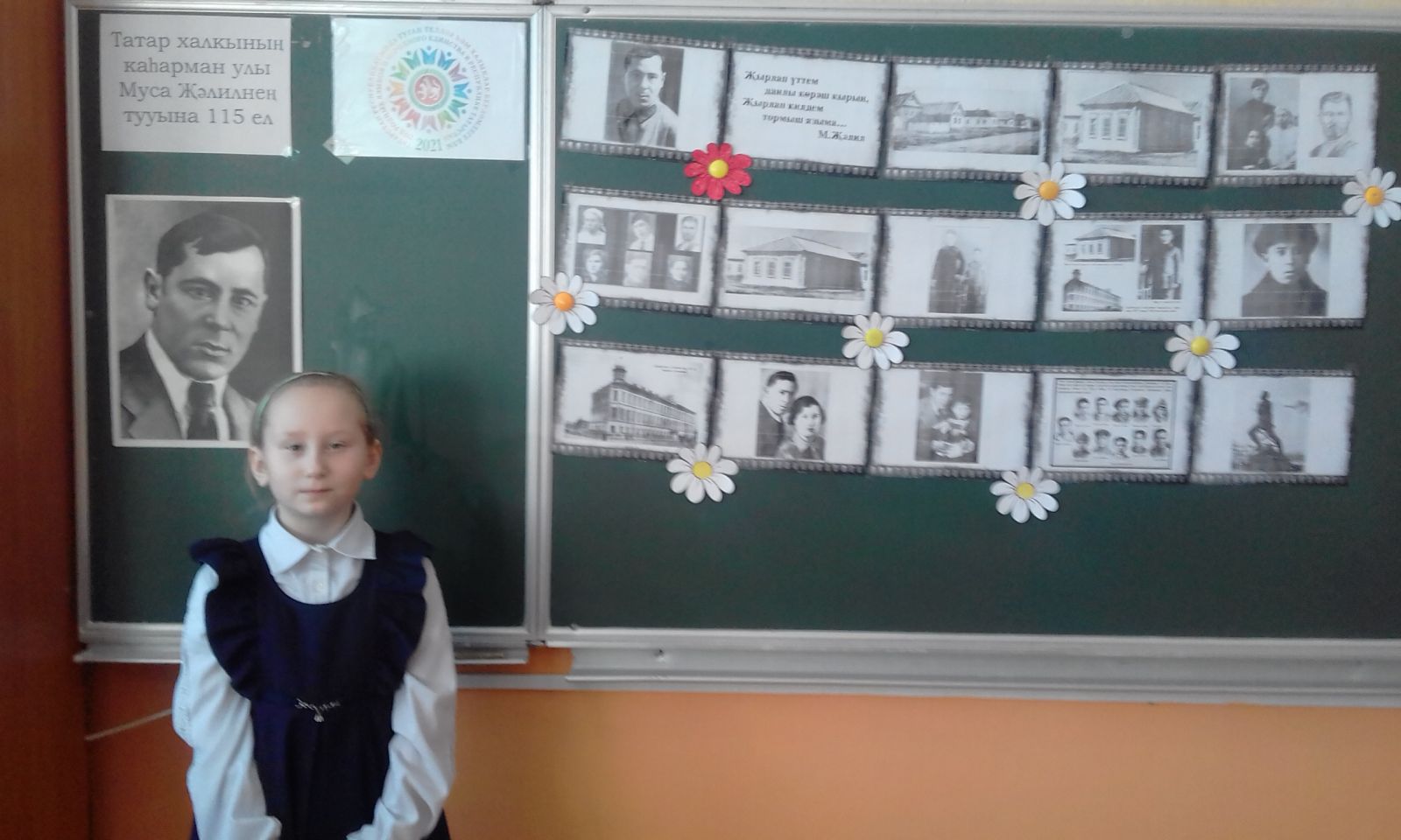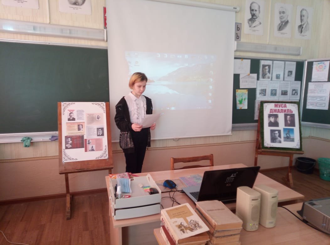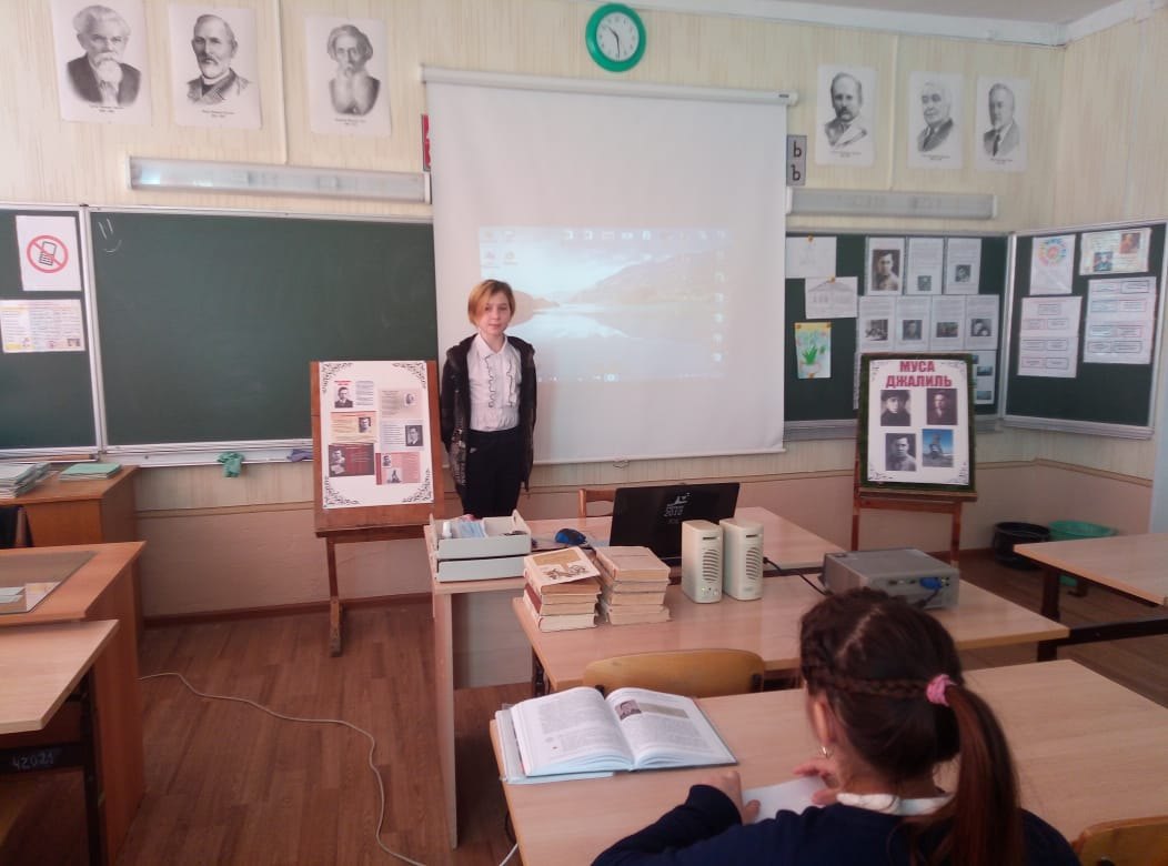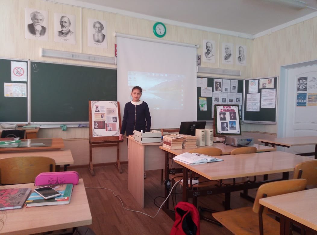 В 6 и 7 классе прошли уроки литературы (учитель Маслакова Г. Я.), посвящённые 115-летию со дня рождения великого татарского поэта Мусы Джалиля. Учащиеся вспомнили основные факты биографии поэта, читали наизусть наиболее понравившиеся им стихотворения Мусы Джалиля. -