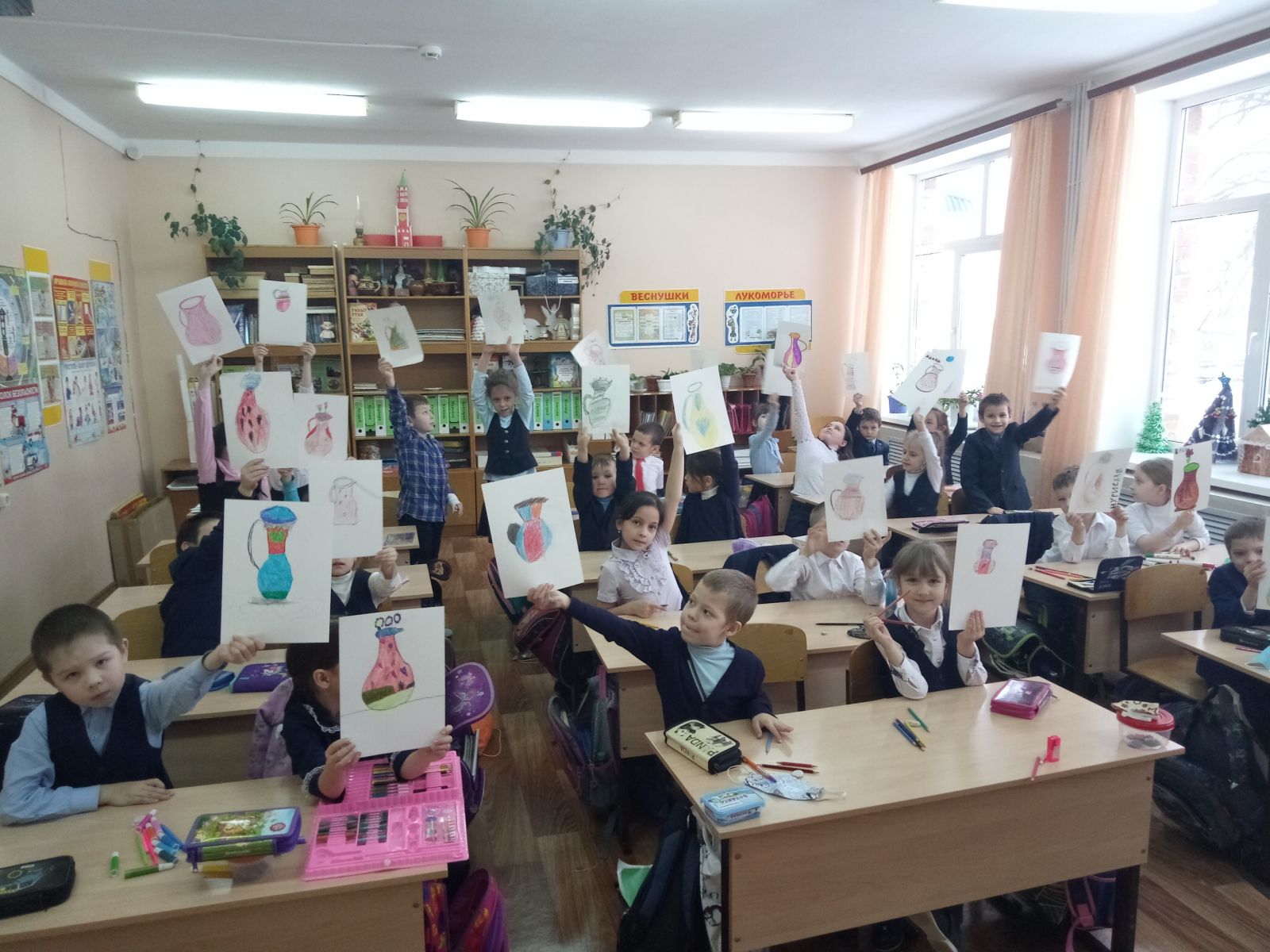 Под руководством учителя ИЗО Зариповой А.Г. был проведен мастер-класс в первом классе.