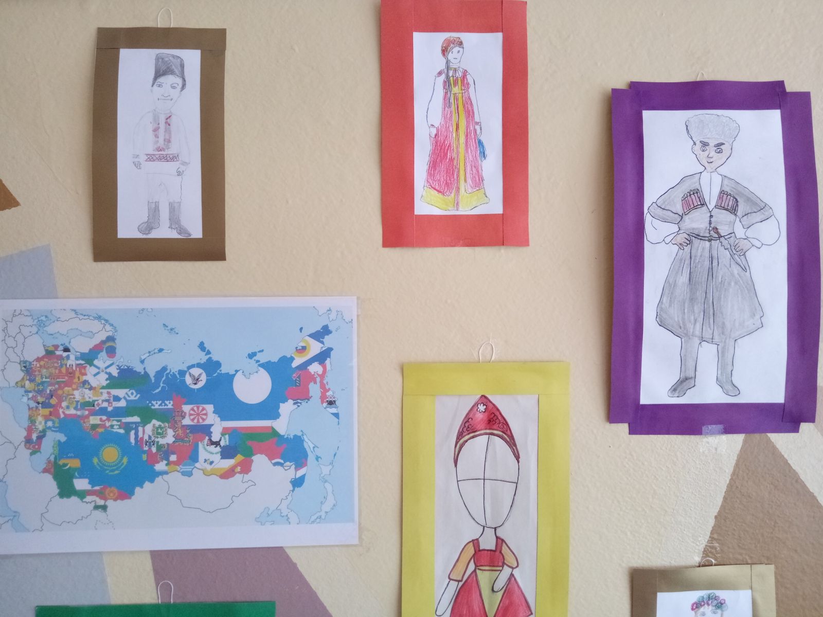 Технология кабинетында укучылар күргәзмәсе эшли. Традицион баш киемнәре 6 нчы сыйныф укучылары тарафыннан башкарылды. Технология укытучысы әлеге мастер - классны республика конференциясендә тәкъдим итте. Шулай ук 7-8 сыйныф укучылары төрле халыкларның костюмнарында курчаклар ясадылар. Чыганак булып мәктәп китапханәсеннән китаплар тора.В кабинете технологии представлена выставка учащихся. Традиционные головные уборы выполнены учащимися 6 классов. Учитель технологии представляла этот мастер - класс на республиканской конференции. Также учащимися 7 - 8 классов выполнены куклы в костюмах разных народов. Источниками являются книги из школьной библиотеки. -