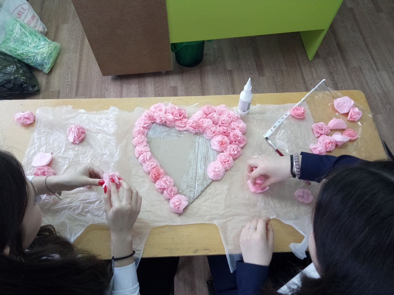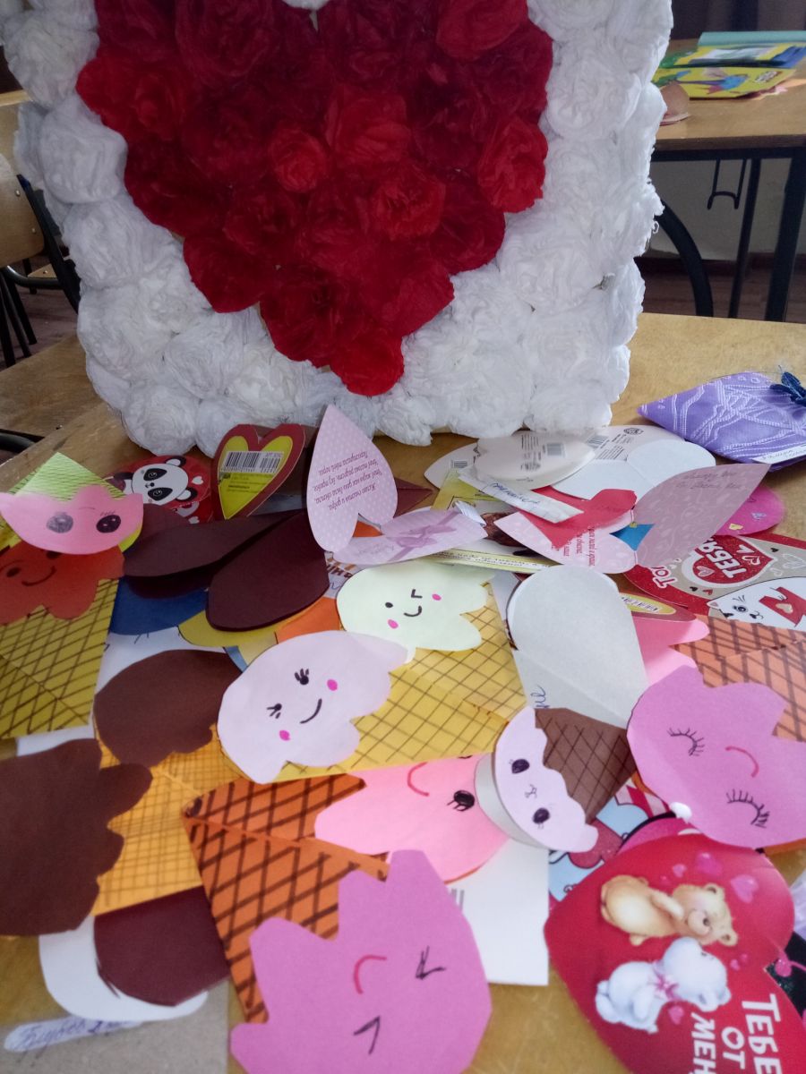 Один из любимых праздников детей в современной школе — «День Святого Валентина», который отмечается ежегодно 14 февраля. Хотя этот праздник не является исконным русским, он уже прижился в нашей стране. День Святого Валентина (День всех влюбленных) — праздник, которого ждут все: и те, кто любит, и те, кто только хочет испытать это чувство. Существует традиция, согласно которой влюбленные в этот день обмениваются подарками, маленькими валентинками, символизирующими любовь, признательность, уважение друг к другу.Под руководством учителя технологии Зариповой А.Г. учащимися были изготовлены валентинки, а учениками 8 класса оформлена фотозона ко дню Св. Валентина. -