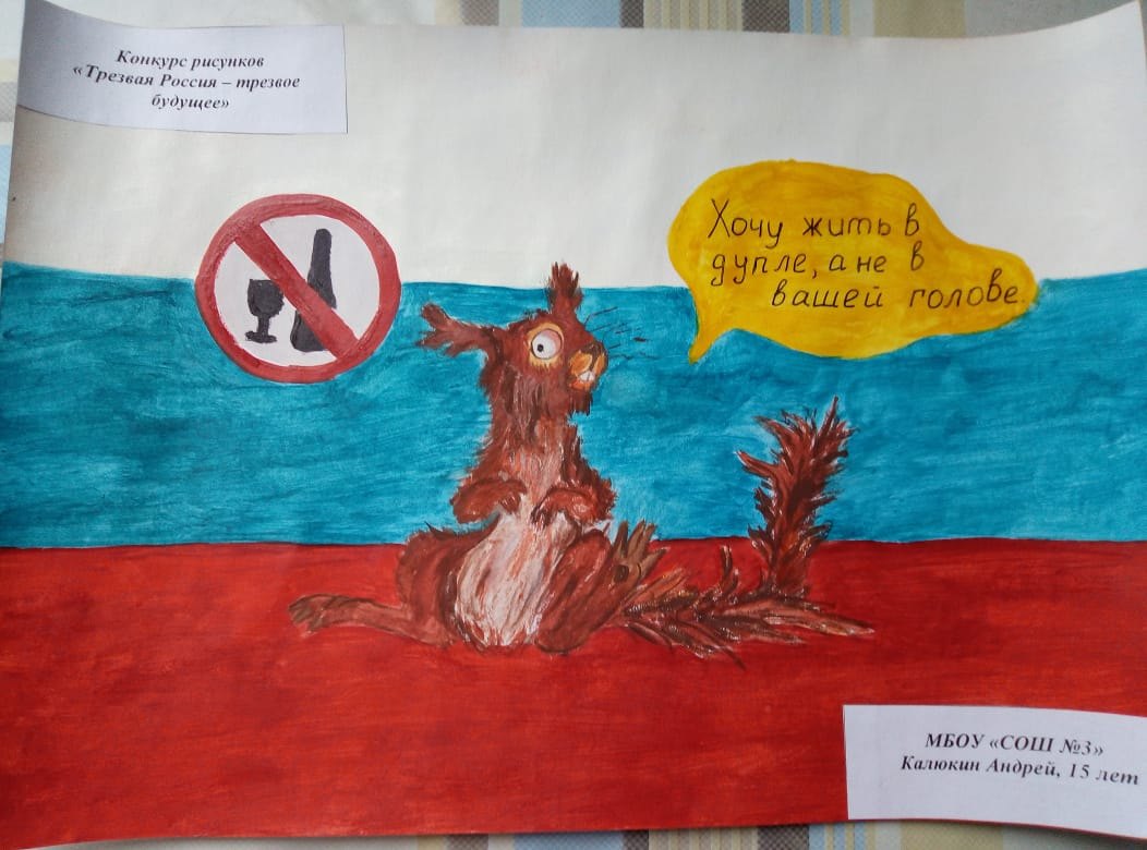Ученик 9 класса Калюкин Андрей принял активное участие в конкурсе рисунков "Трезвая Россия - трезвое будущее", организованный МБУ "ЦМ (с) ФООП" Форпост"