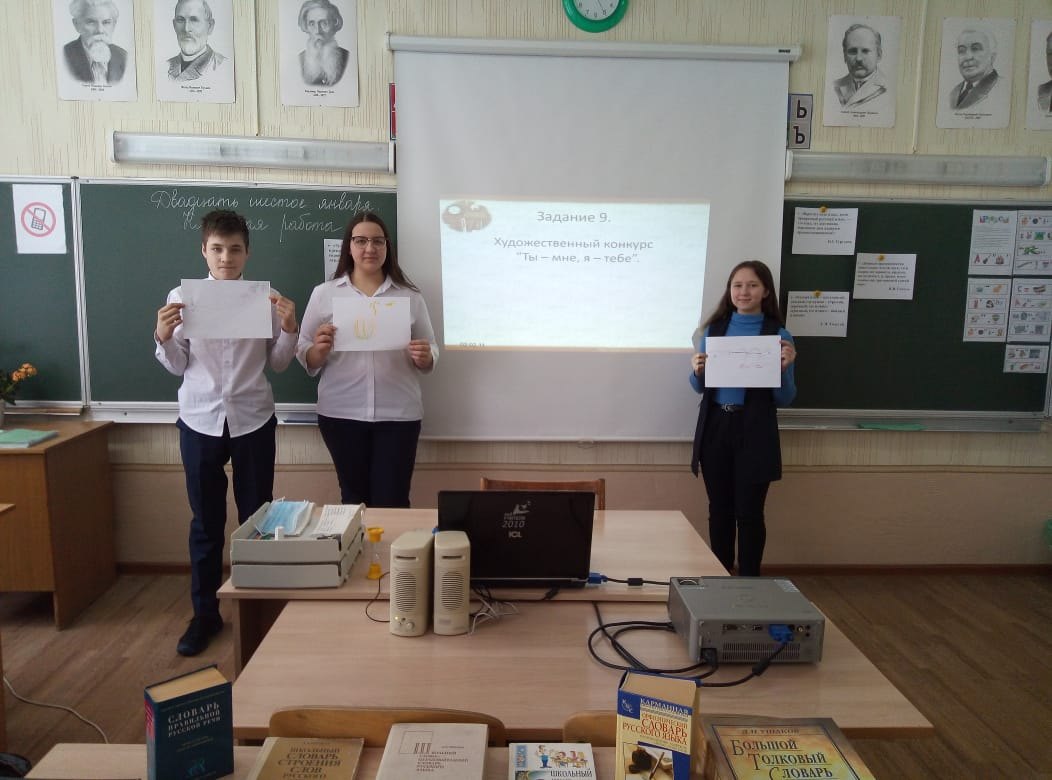Рус теле һәм әдәбияты атналыгы кысаларында 26 нчы гыйнварда укытучы Г.Я.Маслакова тарафыннан 6-7 сыйныфларда “Рус телен яхшы белүчеләр” викторинасы,. 8 енче сыйныфта“Телебез - бөек рус теле, аны саклагыз!” дип аталган лингвистик уен үткәрелде. Командалар рус телен никадәр яхшы белүдә, тапкырлыкта, зирәклектә көч сынаштылар.26 января в рамках Недели русского языка и литературы учителем Маслаковой Г. Я. была проведена увлекательная викторина "Знатоки русского языка" в 6,7 классах и лингвистическая игра "Берегите язык, наш великий русский язык!" в 8 классе. Команды соревновались между собой в смекалке, находчивости и, конечно же, в знаниях по русскому языку. -