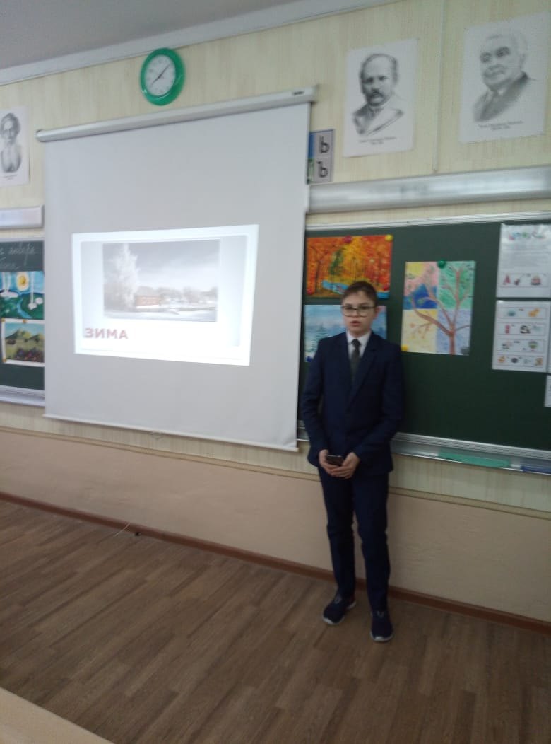 Рус теле һәм әдәбияты атналыгы кысаларында 27 нче гыйнварда 6 сыйныфта (укытучы Г.Я.Маслакова) ” Рус шагыйрьләре иҗатында ел фасыллары “дип аталган шигырь укучылар конкурсы үтте. Балалар яраткан әдипләренең рус табигатенә багышланган әсәрләрен сөйләделәр. Моннан тыш, алар билгеле пейзажист- рәссамнарның эшләре белән дә таныштылар. Конкурстан соң 3 җиңүче билгеләнде .Продолжается Неделя русского языка и литературы. 27 января в 6 классе (учитель Маслакова Г. Я.) прошел конкурс чтецов "Времена года в лирике русских поэтов". Ребята читали стихи любимых поэтов, посвящённые красоте русской природы в разное время года. Кроме этого, они познакомились с работами известных художников-пейзажистов. По завершении конкурса определились три победителя. -