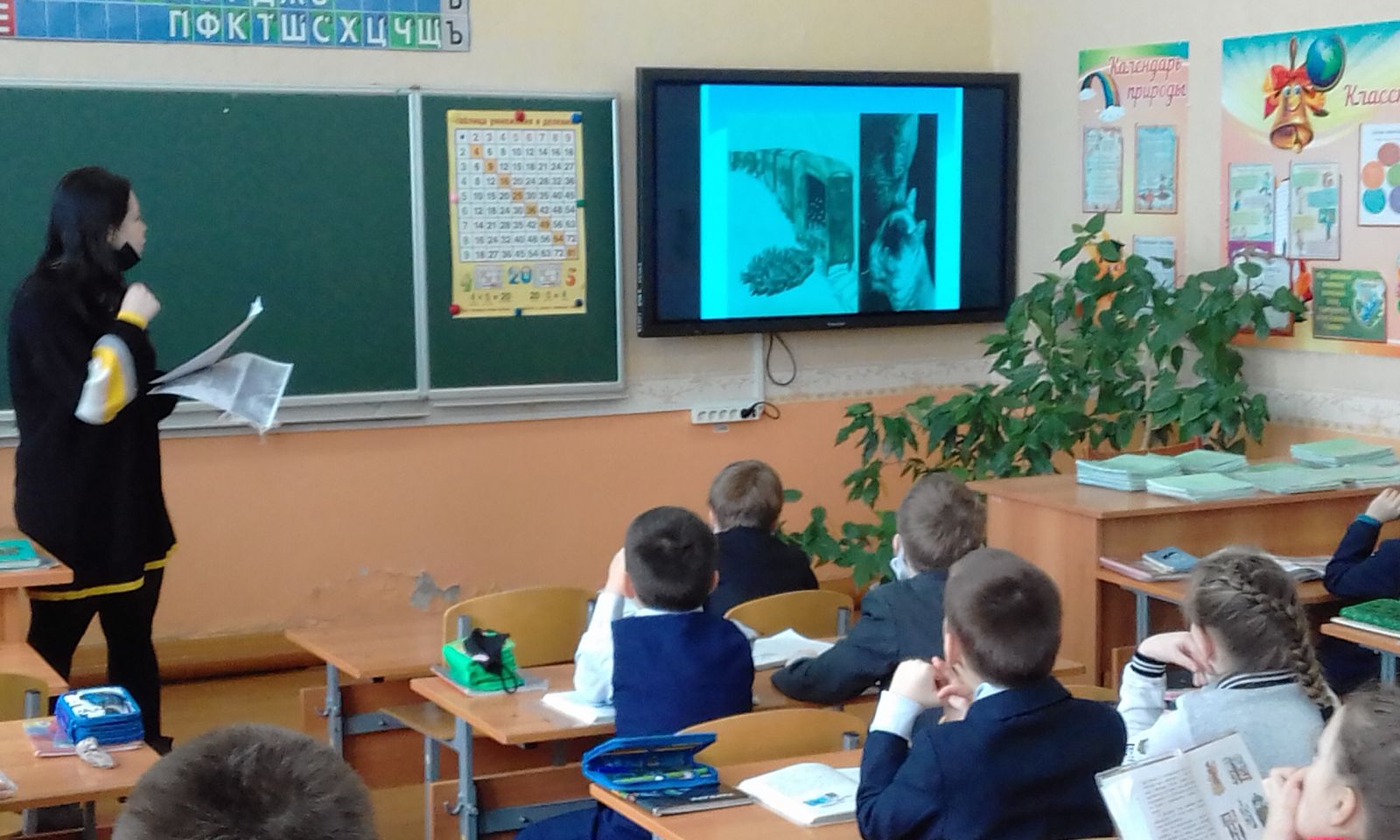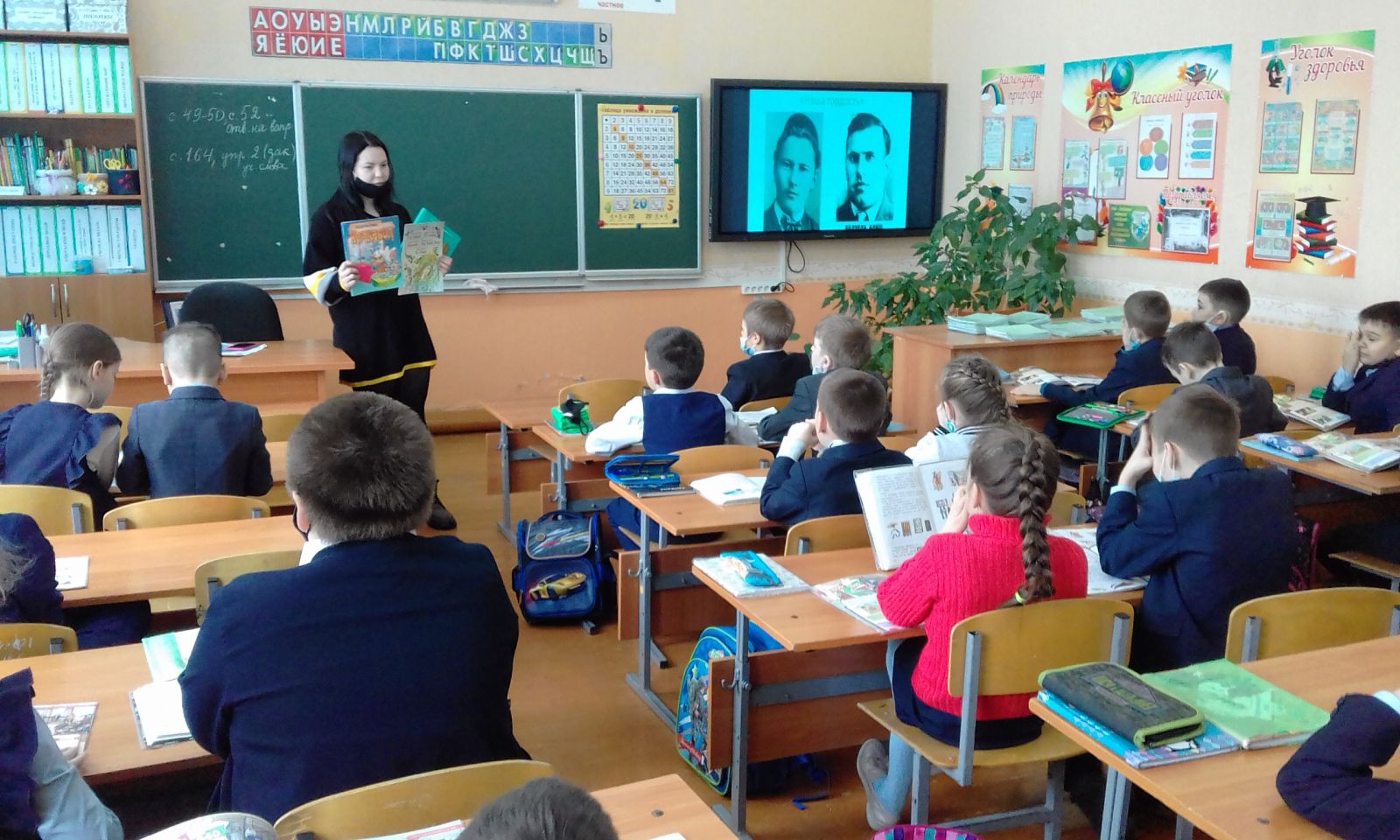 23 гыйнвар көнне, Халыкара туган тел көненә багышланган айлык кысаларында, укучыларны Татарстан язучыларының әдәби иҗаты белән таныштыру, туган якка мәхәббәт тәрбияләү максатыннан, район үзәк китапханәсенең 2 нче филиалы китапханәчесе 2 нче сыйныфта "Татарстанның күренекле язучылары – безнең горурлыгыбыз" дип исемләнгән тематик чара үткәрде»23 января в рамках проведения месячника, посвященного международному дню родного языка, в целях знакомства учащихся с литературным творчеством писателей Татарстана, воспитания чувства любви к родному краю, библиотекарь филиала №2 ЦРБ во 2 классе провела тематическое мероприятие «Выдающиеся писатели Татарстана – наша гордость»