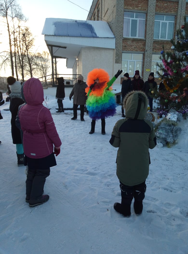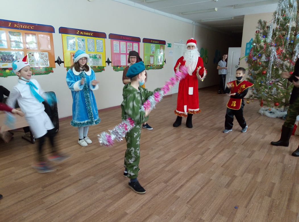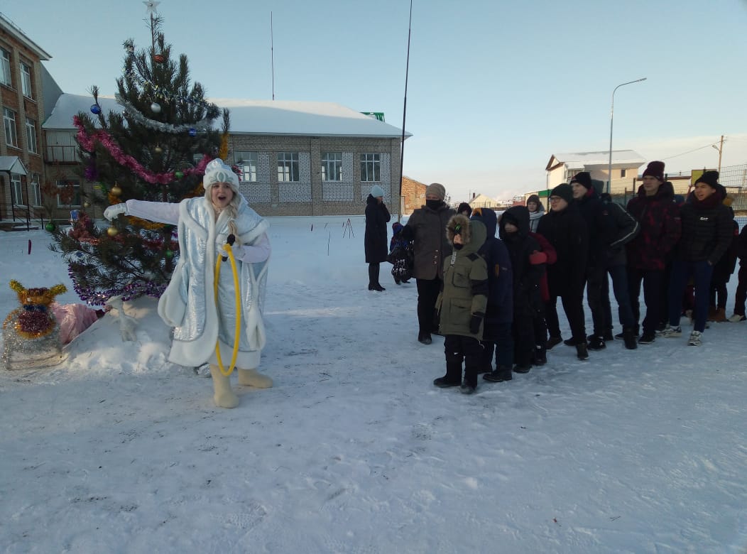 28 декабря в школе был организован новогодний праздник для учащихся 1-9 классов. Представление проходило у новогодней елки с небольшого представления с участием современной бабы – яги и Кикиморы. Звучало много смеха и песен. Ребята с огромной радостью встретили самых долгожданных гостей на празднике – Деда Мороза и Снегурочку, и были не только зрителями, но и участниками праздника: участвовали в конкурсах, пели, проводили флеш-моб у ёлки, веселились. По окончании представления состоялась новогодняя дискотека.