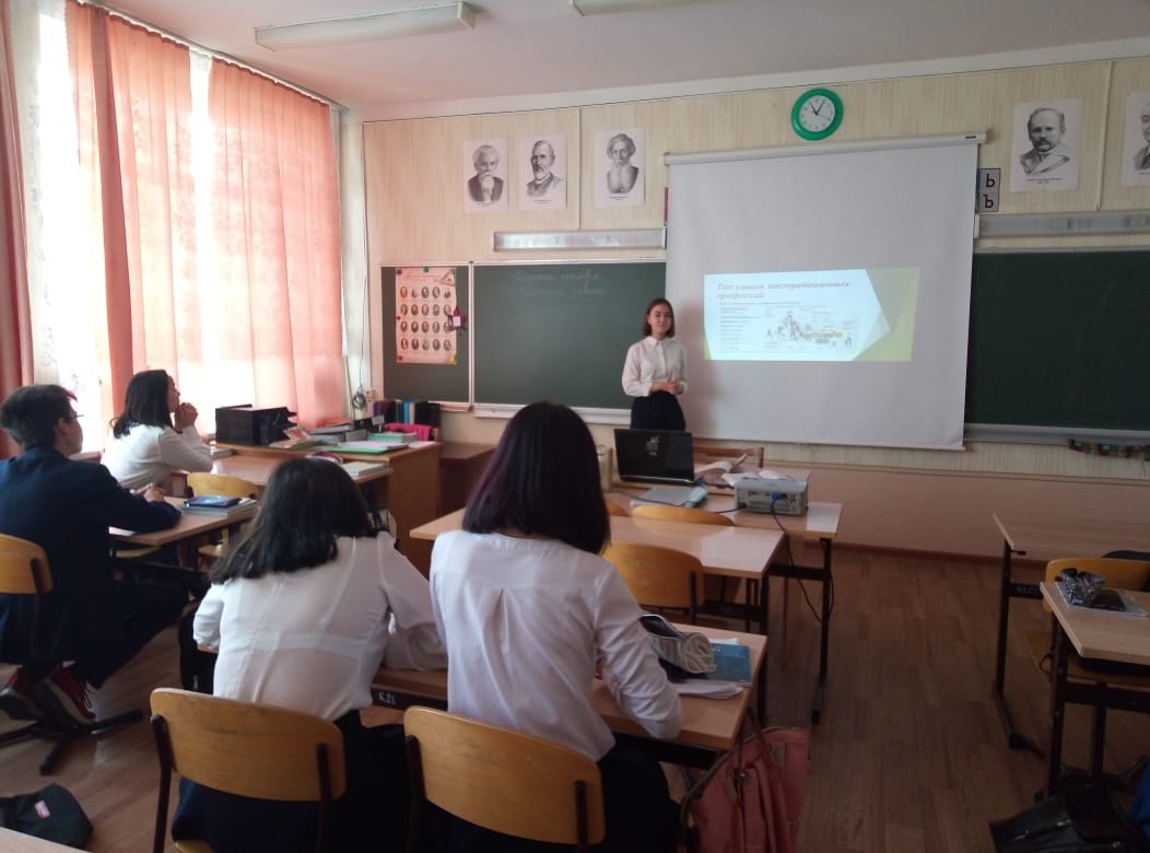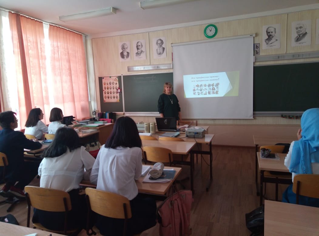 В 9 классе (классный руководитель Маслакова Г. Я.) прошёл классный час на тему "Все профессии нужны - все профессии важны!", основной целью которого является профессиональное самоопределение учащихся. Из материалов занятия, которое подготовили Лукьянова Н. и Раджапова А., ребята узнали о самых востребованных на сегодня профессиях, о качествах, которыми должен обладать хороший специалист. -