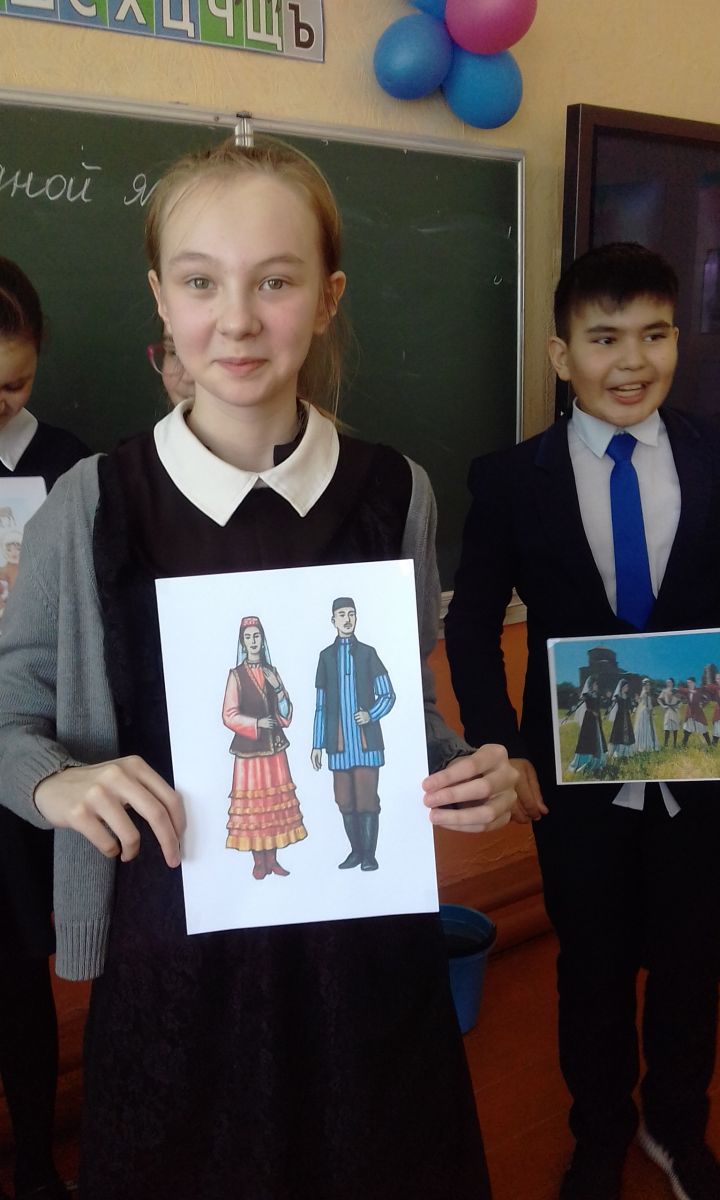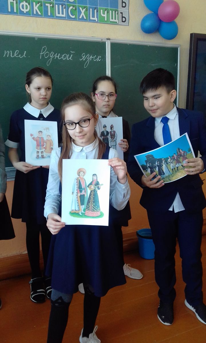 В рамках проведения международного дня родных языков и с целью воспитания толерантного отношения к национальным традициям, уважения к культуре разных народов (обычаям, традициям); формирования активной гражданской позиции в 4 классе был проведен урок «Путешествие по странам мира». Дети разбивались на группы, выбирали страну, народ, который они будут представлять. Каждой группе нужно было подготовить небольшое информационное сообщение о стране или народе, проживающем в этой стране, элементы народного костюма, народную игру, забаву, легенду или обычай (учитель: Мухутдинова Р.Ф.). -