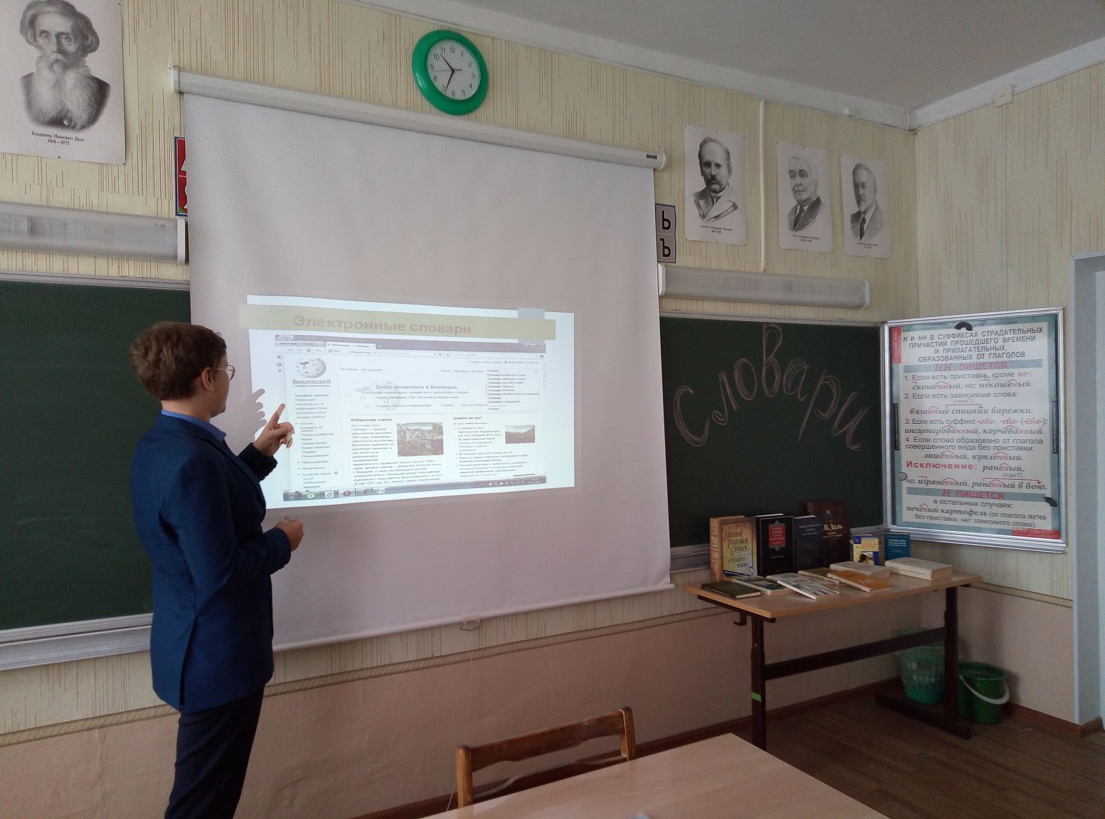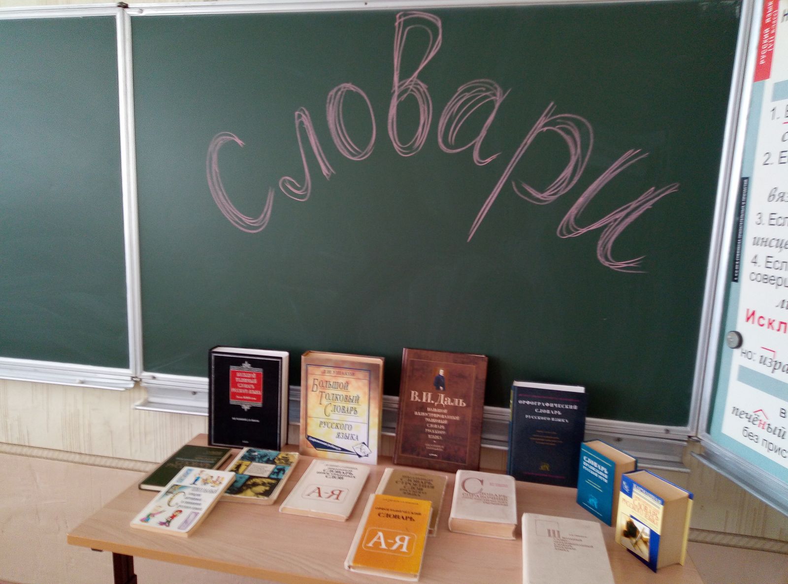 «Словарь – это вся вселенная в алфавитном порядке…»(Анатоль Франс)28 ноября уроки русского языка (учитель Маслакова Г.Я.) в 5-9 классах были посвящены Дню словаря, который отмечается 22 ноября, в день рождения Владимира Ивановича Даля, русского ученого, писателя, врача, этнографа, собирателя фольклора, широко известного как автора «Толкового словаря живого великорусского языка». На уроке ребята познакомились с типами различных словарей, научились извлекать из них необходимую информацию. Кроме этого, учитель познакомила ребят с электронными ресурсами, научила пользоваться словарями. В кабине русского языка была организована выставка словарей.