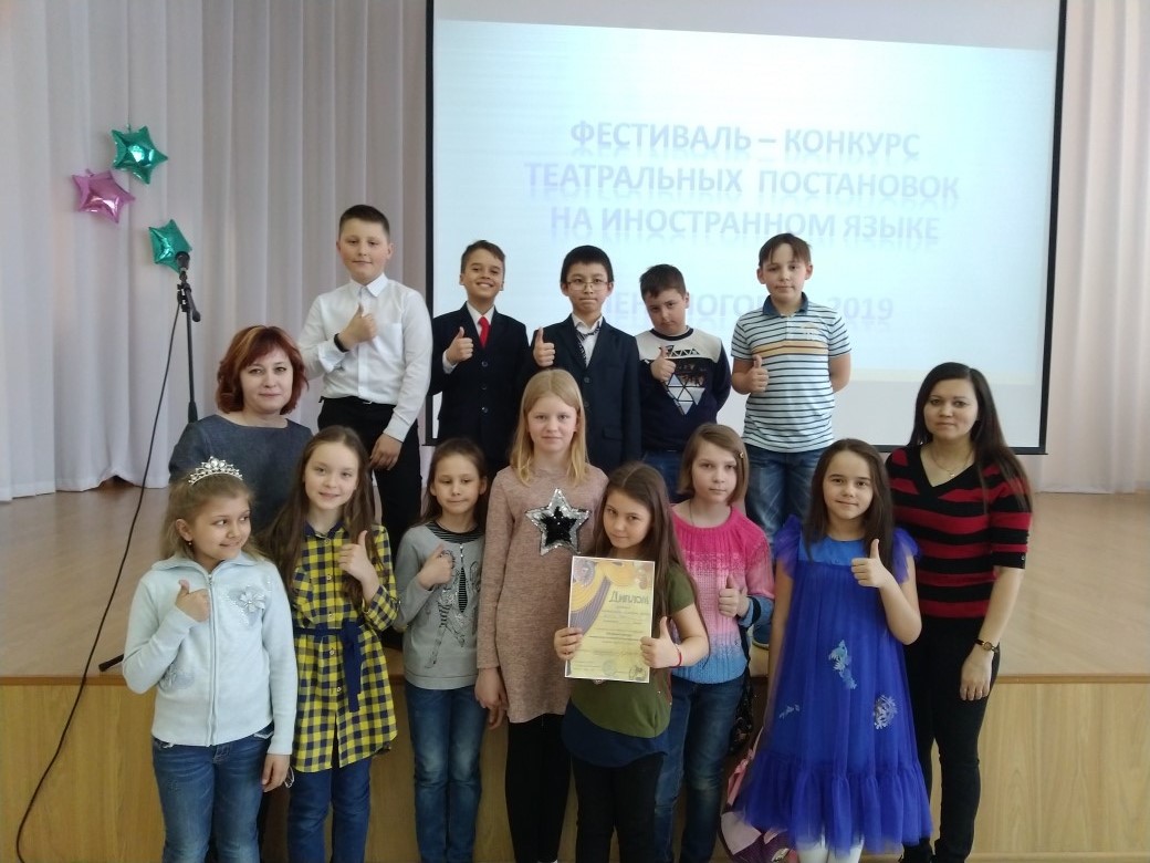 В школе №2 прошел фестиваль - конкурс театральных постановок на иностранном языке. Учитель английского языка Сафиуллина Г. А. Наши ученики заняли ПЕРВОЕ МЕСТО! ПОЗДРАВЛЯЕМ!!!