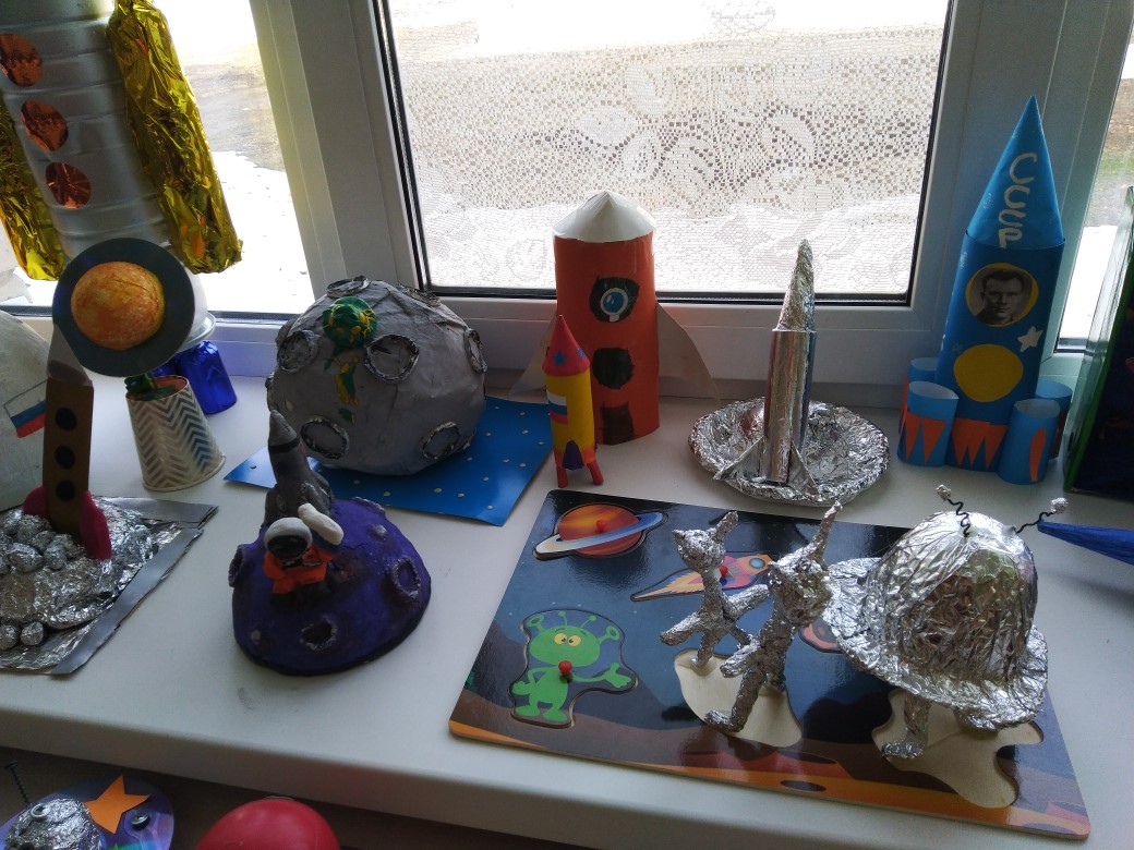 Дети совместно с родителями приняли участие в конкурсе "День космонавтики", на которую подготовили поделки, рисунки, аппликации на космическую тематику. Даже будущие первоклассники сделали свои поделки из пластилина. Все работы отличались индивидуальностью и неповторимостью. Благодарим всех участников выставки за проявленную активность, неиссякаемую фантазию и мастерство, желаем им дальнейших творческих успехов!