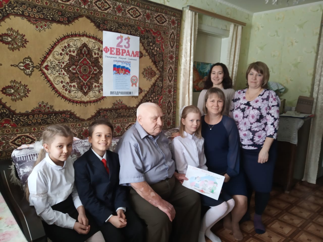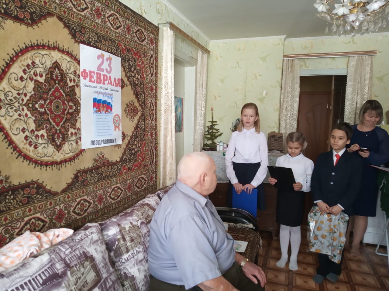 День защитника Отечества — это праздник настоящих защитников Родины, благодаря которым мы сегодня живем под мирным небом. В канун 23 февраля ребята из 4 класса под руководством классного руководителя Мухутдиновой Резеды Фависовны с лозунгом «Кто, если не я?» поздравили ветеранов Великой Отечественной войны с Днем защитника Отечества, Владимира Владимировича и Николая Семёновича! Дети посетили дома ветеранов, вручив им открытки и рисунки нарисованные своими руками.Поздравления стали приятной неожиданностью для ветеранов и не смогли оставить их равнодушными. Удивление и умиление были заметны на их лицах. Они с радостью встретили ребят, были признательны за оказанное им внимание и помощь, показывали свои награды. В благодарность за поздравление ветераны говорили напутственные слова и давали мудрые жизненные советы.Участие молодежи в такого рода акциях является очень важным элементом нравственного и гражданско-патриотического воспитания. Ведь кому, как не ветеранам ВОВ, мы должны быть благодарными за то, что мы живем в свободной, независимой стране. С праздником, дорогие ветераны! -