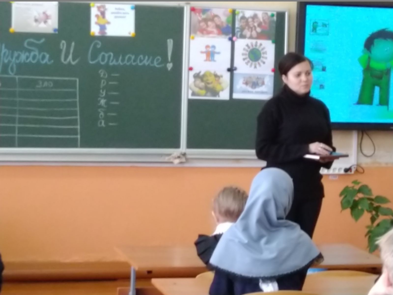 В нашей школе также проходят уроки «Дружбы и Согласия». Дети очень хорошо осваивают материал и охотно с интересом занимаются на данном уроке!!! Педагог-организатор Андреева Л. М.