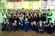 Директором школы Назмуддиновым Г. Г., обучающимся первого класса, были выданы светоотражающие значки. Теперь нас будет видно на дороге! Мы за безопасность!!!