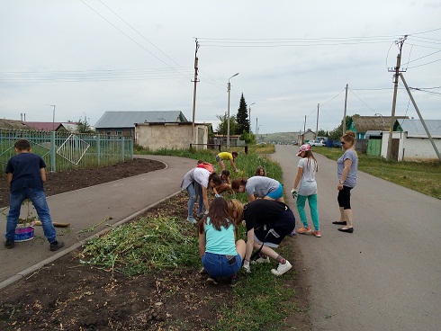 Ребята из трудовой бригады стараются, чтобы к новому учебному году территория школы выглядела еще лучше.