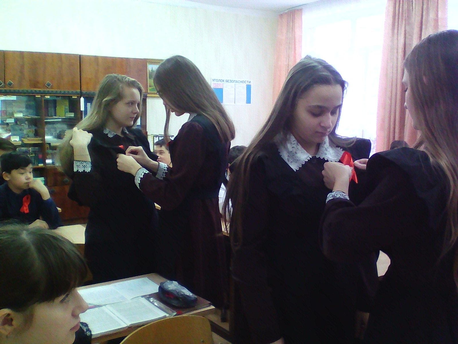 Главной целью данной акции стала актуализация у подростков потребности в использовании безопасных форм поведения в отношении заражения ВИЧ-инфекцией. Символом международного дня борьбы со СПИДом является красная ленточка, которую получили все участники акции. В мероприятиях приняли участие учащиеся 7-9 классов.