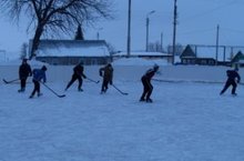 Не прекращается работа спортивного корта и во время зимних каникул. Ребята катаются на коньках, играют в хоккей.