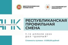 С 7 по 13 апреля 2025 года на базе детского оздоровительного лагеря "Добрый" (Высокогорский район, микрорайон Кульсеитово, Красносельское селькое поселение, ул. Акъяр 1а) состоится Республиканская профильная смена "Даешь новый курс" (ДНК).К участию в смене приглашаются обучающиеся образовательных организаций, организаций дополнительного образования в возрасте 12-17 лет.Организаторы смены: Министерство образования и науки Республики Татарстан и государственное бюджетное учреждение дополнительного образования «Республиканский центр внешкольной работы».Стоимость участия в смене – 8000 руб.Участникам смены необходимо пройти регистрацию по ссылке