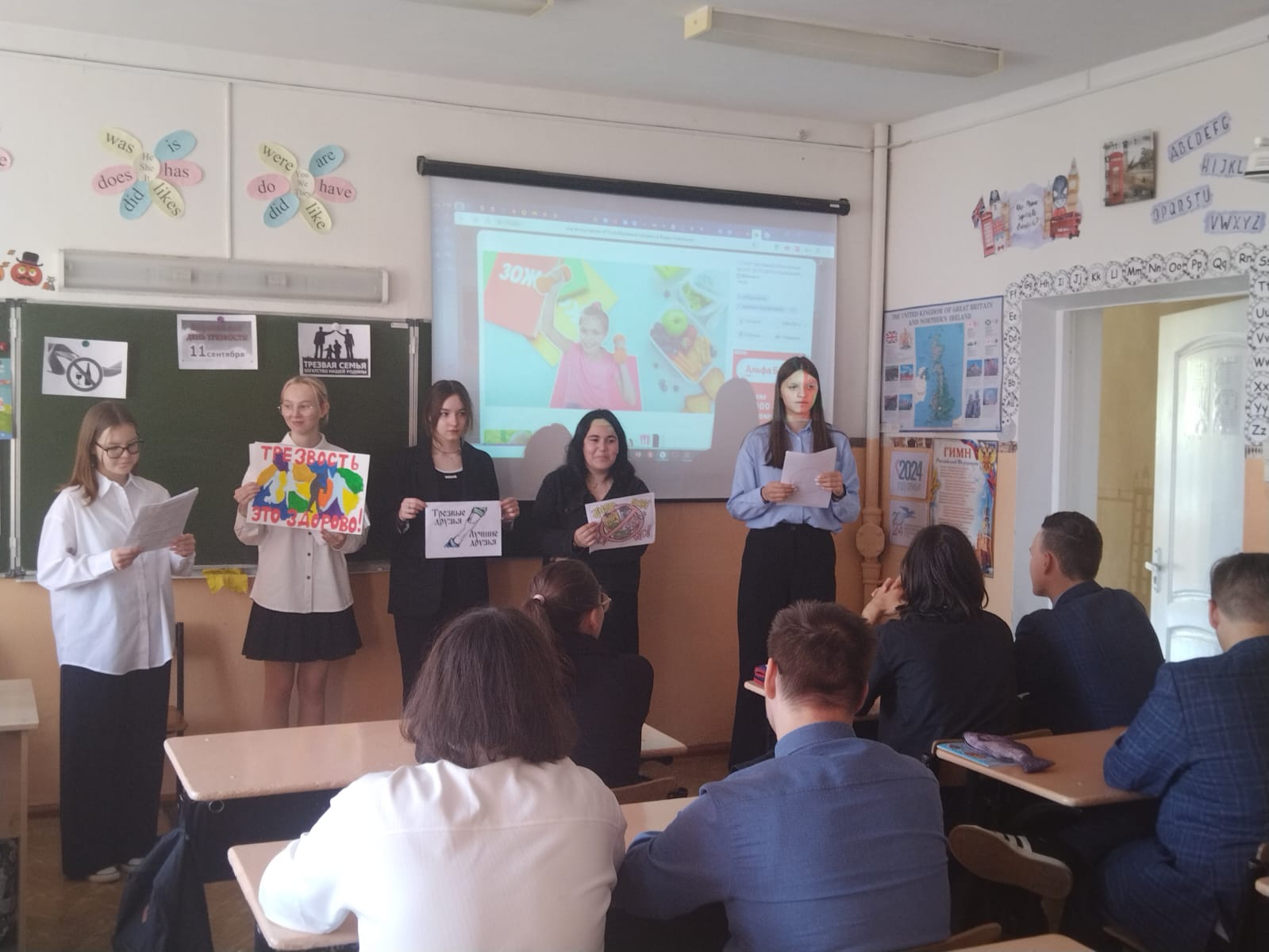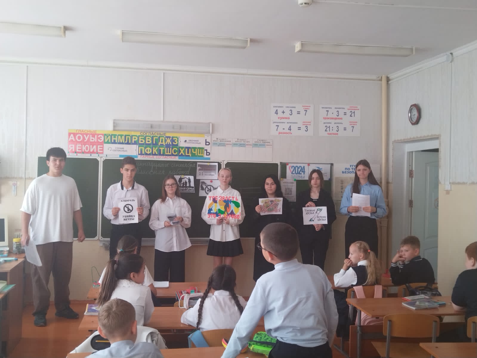 В рамках Всероссийского дня Трезвости активисты отряда "Форпост" провели с учащимися 1-8 классов беседу о пагубности употребления алкоголя и раздали буклеты, призывающие вести Здоровый образ жизни. -