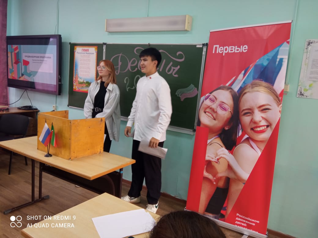 Смысл ученического самоуправления в современной школе заключается не в управлении одних детей другими, а в обучении всех детей основам демократических отношений в обществе, в обучении их управлять собой, своей жизнью в коллективе. Участие в самоуправлении поможет учащимся сформировать у себя навыки демократизма, умение самостоятельно действовать, нестандартно мыслить, принимать решения и осуществлять их.13 октября 2023 года в нашей школе состоялись выборы Председателя в «Совет первых». В Избирательной комиссии в течение первой предвыборной недели зарегистрировались два кандидата: Галимов Э., ученик 8 класса, Куринова А., ученица 8 класса. Все ребята достойны возглавлять ученическое самоуправление, имеют большое желание сделать школу лучше. С первого дня предвыборной кампании штаб развернул активную деятельность: были развешены листовки, агитационные плакаты с пламенными призывами голосовать именно за их кандидата.