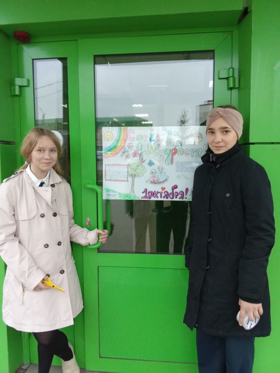 Ребята 5-9 классов расклеили по своему микрорайону поздравительные плакаты и открытки. Поздравляем людей, которые очень многое знают об этой жизни. Людей, которые могут многое рассказать и многому научить. Людей, чьи благородные седины означают не только возраст, но и безграничную мудрость, бесценный опыт и большие познания. Желаем вам бесконечно долгих и счастливых лет, наполненных здоровьем, покоем, счастьем и заботой. Желаем, чтобы, не смотря на возраст, ваша душа всегда оставалась молодой и энергичной. С праздником! -