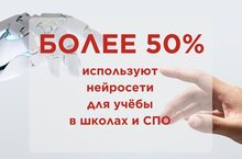 Исследование «Медиапотребление современной молодёжи», проведённое аналитическим отделом Института воспитания в 2025 году, показало, что нейросети для учёбы регулярно используют 53% школьников и 54% студентов СПО.