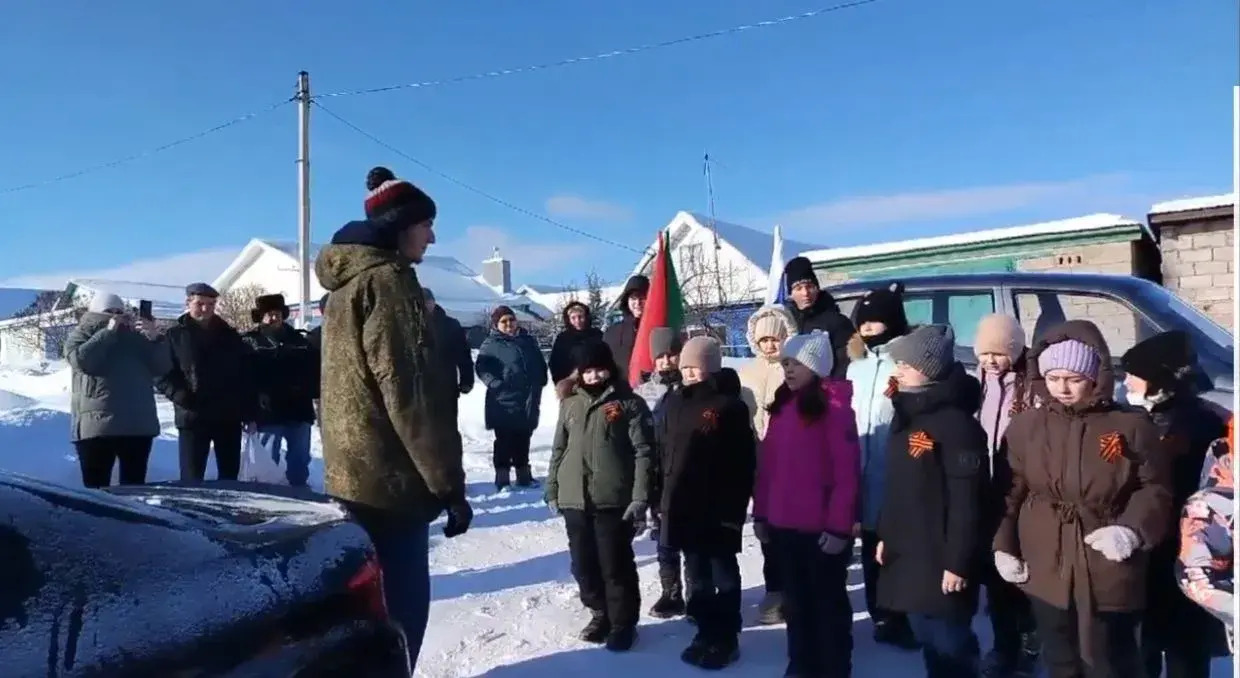 Ученики 3 класса вместе с активистами «Движения Первых» поздравили нашего выпускника, участника СВО с праздником!