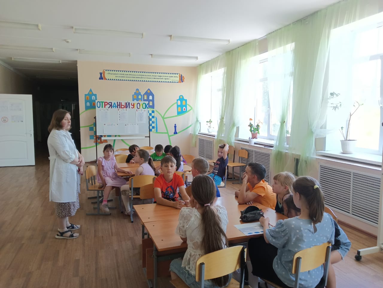 10 июля инспектор по профилактике семейного неблагополучия и правонарушенийсреди несовершеннолетних Ефимова Л.М. провела беседу с ребятами пришкольного лагеря «Солнышко» о летних правонарушениях.
