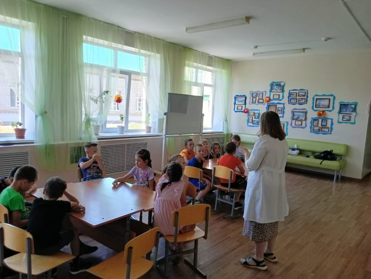 14 июля в пришкольном лагере «Солнышко» состоялась беседа медсестры Н.Н.Блажоновой с воспитанниками лагеря, посвященная формированию здорового образа жизни. Дети узнали, что здоровый образ жизни предполагает оптимальный режим труда и отдыха, правильное питание, достаточную двигательную активность, личную гигиену, закаливание, искоренение вредных привычек, любовь к близким, позитивное восприятие жизни. -