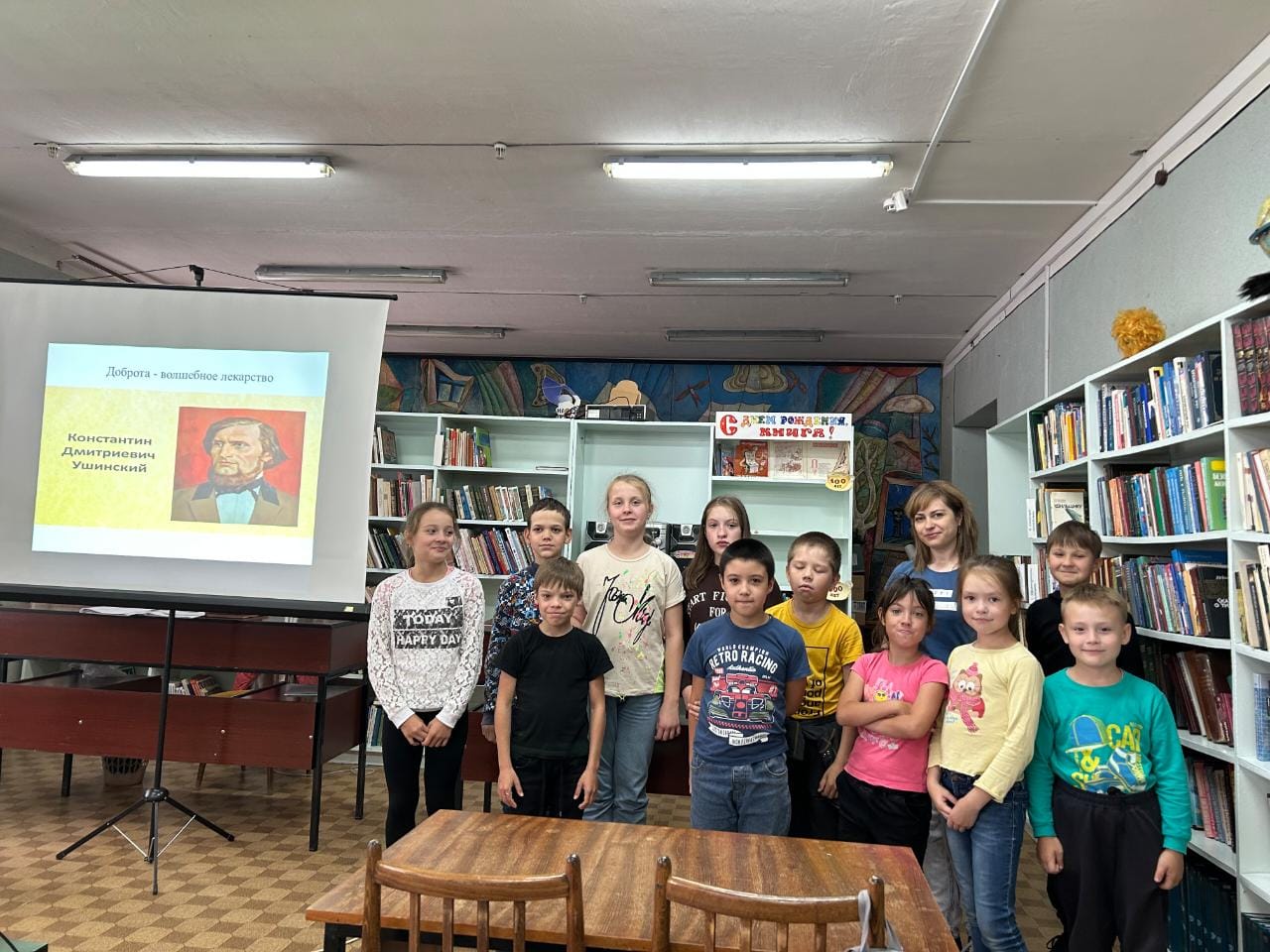 2023 год объявлен годом педагога и наставника, и в этом же году отмечается 200 летний юбилей писателя и педагога К.Д. Ушинского. К этой дате центр детского и семейного чтения, для воспитанников пришкольного лагеря Дубовцева Е.В. провела час интересной книги «Доброта – волшебное лекарство».Ребята познакомились с биографией и творчеством известного во всем мире писателя и педагога. После завершения учебы, и приступив к работе учителем Константин Дмитриевич стал сочинять интересные рассказы для детей, сказки, игры и загадки. Так и появился его учебник «Родное слово», по которому дети учились в школе, до начала 20 века. Короткие рассказы и сказки переносят читателя в волшебный мир природы. А природа в рассказах и сказках, учит доброму отношению ко всему живому. Доброта — это волшебное лекарство, которое вылечит от многих болезней. Надо только научиться быть добрым ко всем окружающим. Всему этому и учат книги Ушинского, он учил маленьких читателей самостоятельно делать вывод о том, что хорошо, а что плохо. Во время мероприятия дети познакомились с книгами писателя, несколько рассказов были прочитаны вслух, затем дети поучаствовали в разгадывании ребусов, искали клад и в заключении просмотрели мультфильм «Три дровосека», по мотивам сказки, которую обработал писатель. -