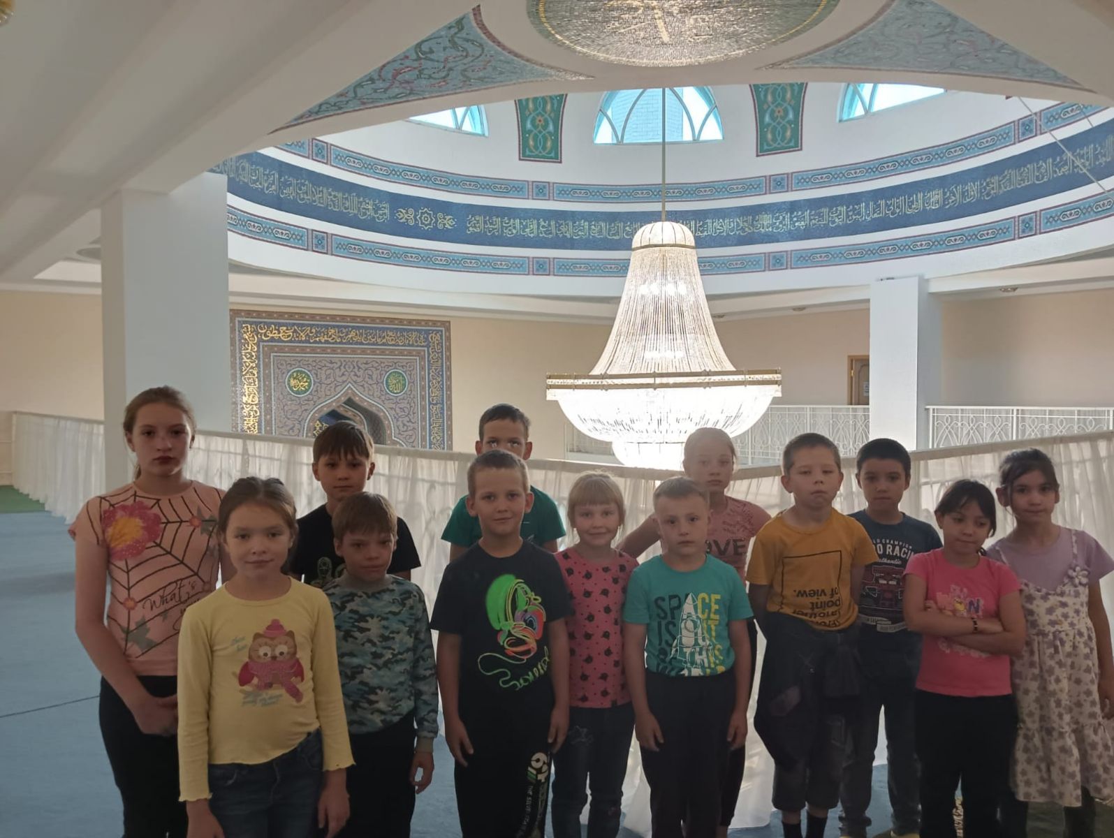 17 июля ребята пришкольного лагеря «Солнышко» посетили мечеть. Сотрудники мечети ознакомили ребят с основами мусульманской религии. В мечети дети посетили музей, молитвенный зал. Молитвенный зал мечети создаёт впечатление лёгкости и торжественности. Экскурсия была очень интересна и познавательна. -