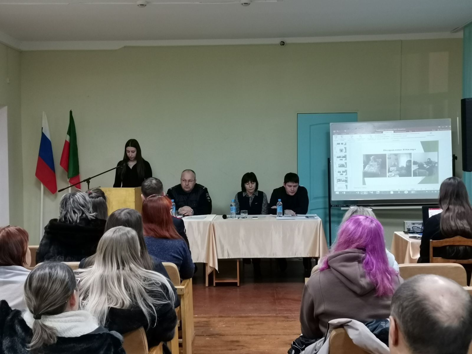 В рамках реализации Всероссийского проекта «Классные встречи», а также в рамках воспитания у подрастающего поколения гражданской идентичности 2 февраля 2023 года на базе Управления образования прошло мероприятие с главой Лениногорского муниципального района Хусаиновым Р.Г. для учащихся школ города, а также участников детских общественных организаций. Нашу школу представляли активисты 8 класса Назарчук И. и Тремасова Д. -