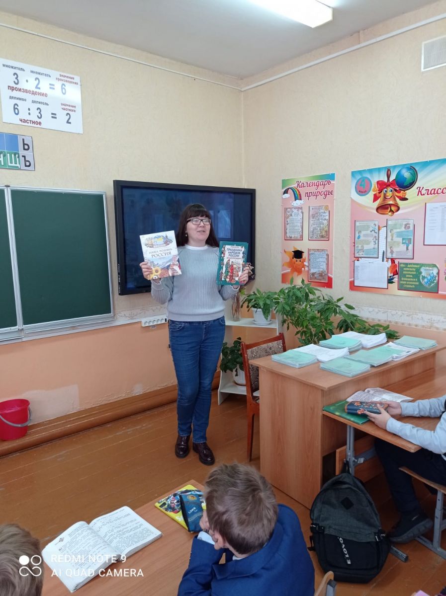 3 ноября библиотекарь филиал №2 городской библиотеки Хайруллина А.Г. с учащимися 4 класса провела информационно-познавательный час «Единым духом мы едины». -