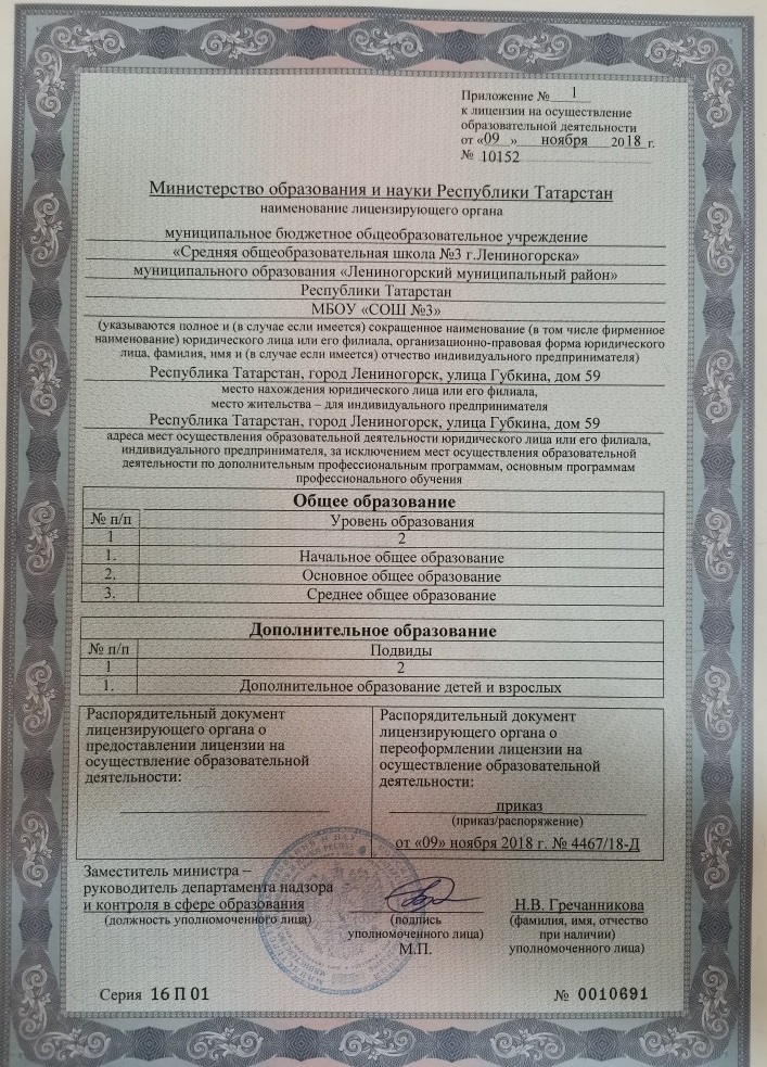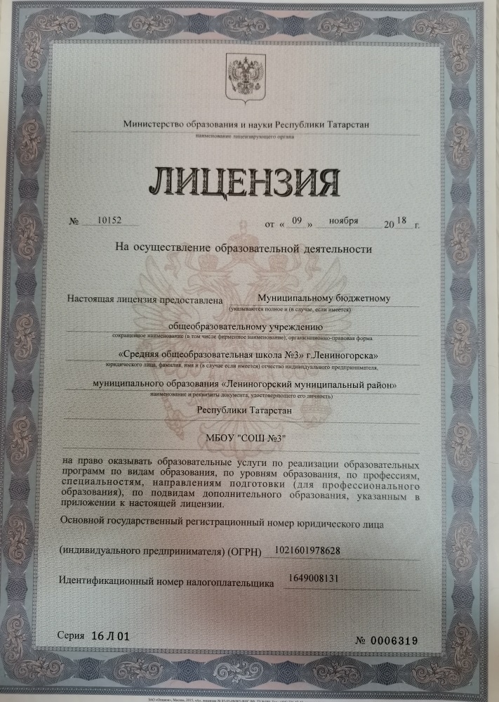 муниципальное бюджетное общеобразовательное учреждение «Средняя общеобразовательная школа №3 г.Лениногорска» муниципального образования «Лениногорский муниципальный район» Республики Татарстан