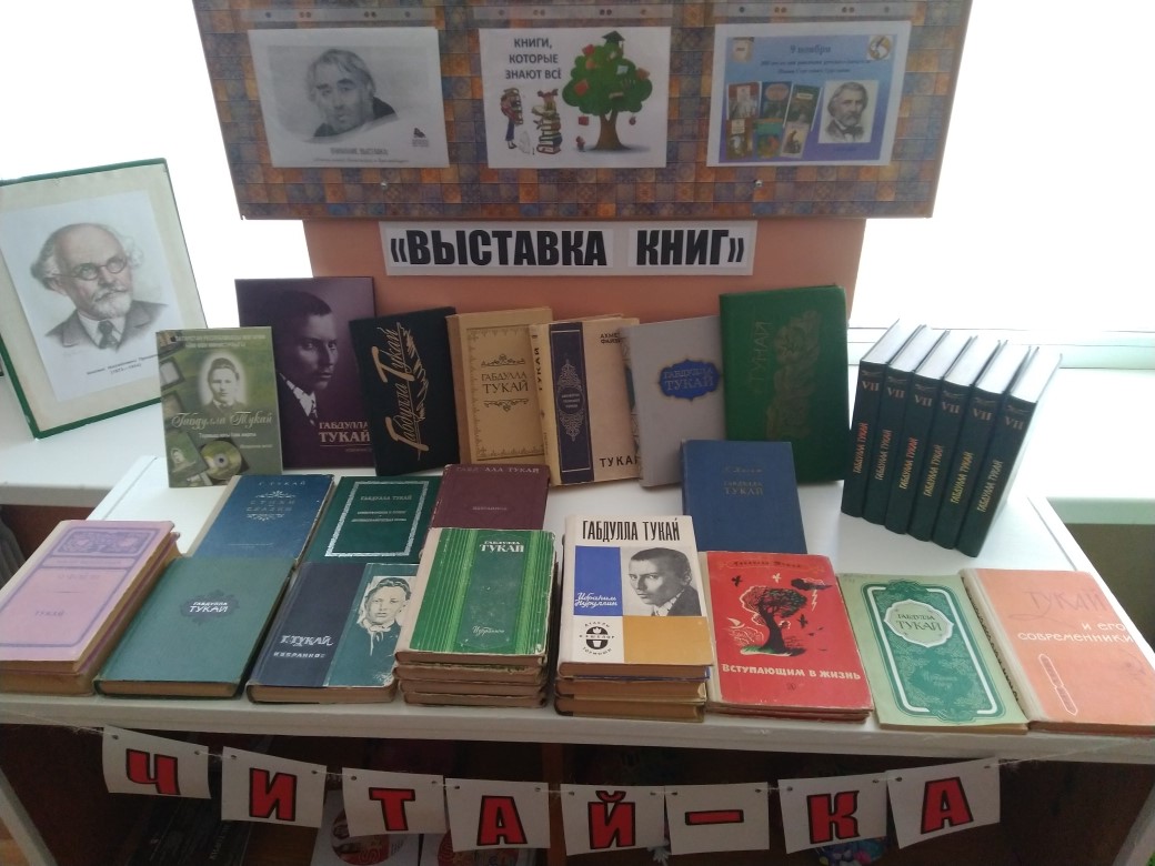 Любой из них свои часы по мне сумеет сверить.Габдулла Тукай «Иду своим путём»Габдулла Тукай (1886–1913), юбилей которого мы отмечаем в апреле, прожив невероятно короткую жизнь, оказался истинным сыном своего времени, имя которого наиболее почитаемо в татарской, и даже шире, в тюркской культуре. Эпоха начала ХХ века оказалась необычайно насыщенной на новаторство, обновление национальной жизни в российских регионах. Тукай произвел настоящую революцию в татарском языке, очистил его от заимствованных арабских и персидских слов, упростил и сделал понятным для широких масс.Фотопортреты Г. Тукая оказались красноречивыми свидетелями этой прекрасной и драматичной эпохи, а потом и основой для многочисленных произведений изобразительного искусства в последующее столетие.Многие явления в татарской культуре в применении к Тукаю носят определение «впервые». Все, что было связано с жизнью Тукая, расширило традиционные рамки восприятия мусульманской культуры. Довольно многочисленные прижизненные изображения татарского поэта, издательская и коммерческая судьба его фотографий, снимки Тукая на смертном одре в больничной палате, во многом разрушили традиционные стереотипы понимания и поведения в национальной среде. Поэт Габдулла Тукай оказался необыкновенно знаменит и популярен еще при своей крайне скоротечной жизни. Его творчество раздвинуло рамки национальной культуры, а его жизнь – расширила границы национальной жизни.Книжная выставка оформленная в школьной библиотеке показывает наиболее известные фотопортреты Габдуллы Тукая с историями их создания, а также первые прижизненные книги поэта с иллюстрациями, сделанными безымянными татарскими художниками в первой половине 1910-х гг. Произведения из фондов музея дополняют эту историю начала века и демонстрируют изобразительную эволюцию как самого Габдуллы Тукая, так и иллюстраций к его произведениям на протяжении столетия. На выставке можно будет увидеть живопись, графику, скульптуру, декоративно-прикладное искусство, книги с иллюстрациями к произведениям Тукая. -