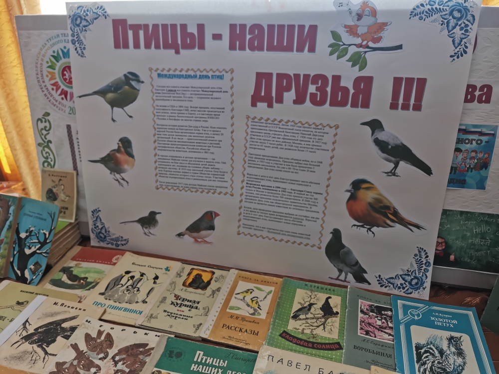 "О чем кричат среди ветвей в саду весеннем птицы?Они других пугают: «Эй, Не смейте здесь селиться!Тут мы поем, здесь наш приют, здесь жили наши предки.Не видите? Мы строим тут, уже учли все ветки!"С 1 апреля в школьной библиотеке работает книжная выставка «Птичья перекличка», посвященная Международному дню птиц.На выставке представлена красочно иллюстрированная литература о пернатых, живущих в лесу, в городе, а также интересные факты из жизни экзотических птиц. Можно прослушать аудиокассету «Лесная азбука» из познавательной серии Владимира Зотова.Приглашаем юных орнитологов познакомиться с выставкой!