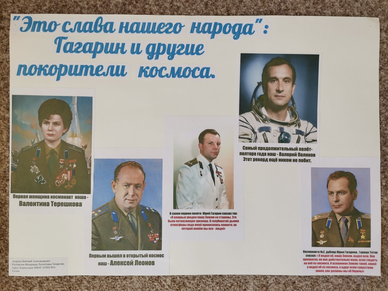 12 апреля 1961 года советский космонавт Юрий Гагарин совершил первый в истории человечества космический полет. В честь первого пилотируемого человеком полета в космос Федеральным законом от 13 марта 1995 года «О днях воинской славы и памятных датах России» был установлен праздник – День Космонавтики.Сколько еще интересных событий нас ждет впереди! Космос нас тянет и зовет! Мы готовы открывать новые тайны Вселенной!Школьный библиотекарь совместно с учеником 4 класса Андреевым Д. подготовили плакаты и аппликации ко "Дню космонавтики" -