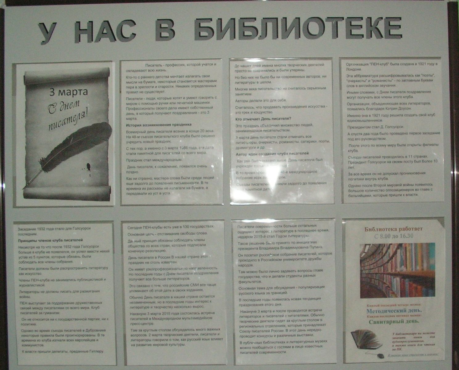 Информационный стенд «Всемирный день писателя» 02.03.2022