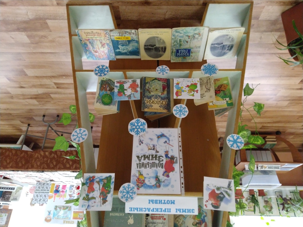 Зимние каникулы – это сезон зимнего или волшебного чтения. Зима – время читать волшебные сказки, рождественские истории. В школьной библиотеке оформлена книжно-иллюстративная выставка "Притормози! Прочти!". Например: «Снежная сказка», «Идет зима-волшебница», «Зима пришла серебристая», «Библиотека Деда Мороза», «Карнавал героев детских книг», «Вернисаж зимней периодики» и т.д. В течение всех каникул читатели могут пользоваться данной выставкой по зимней тематики. Зимние чтения традиционно связаны с новогодними и рождественскими чудесами. -