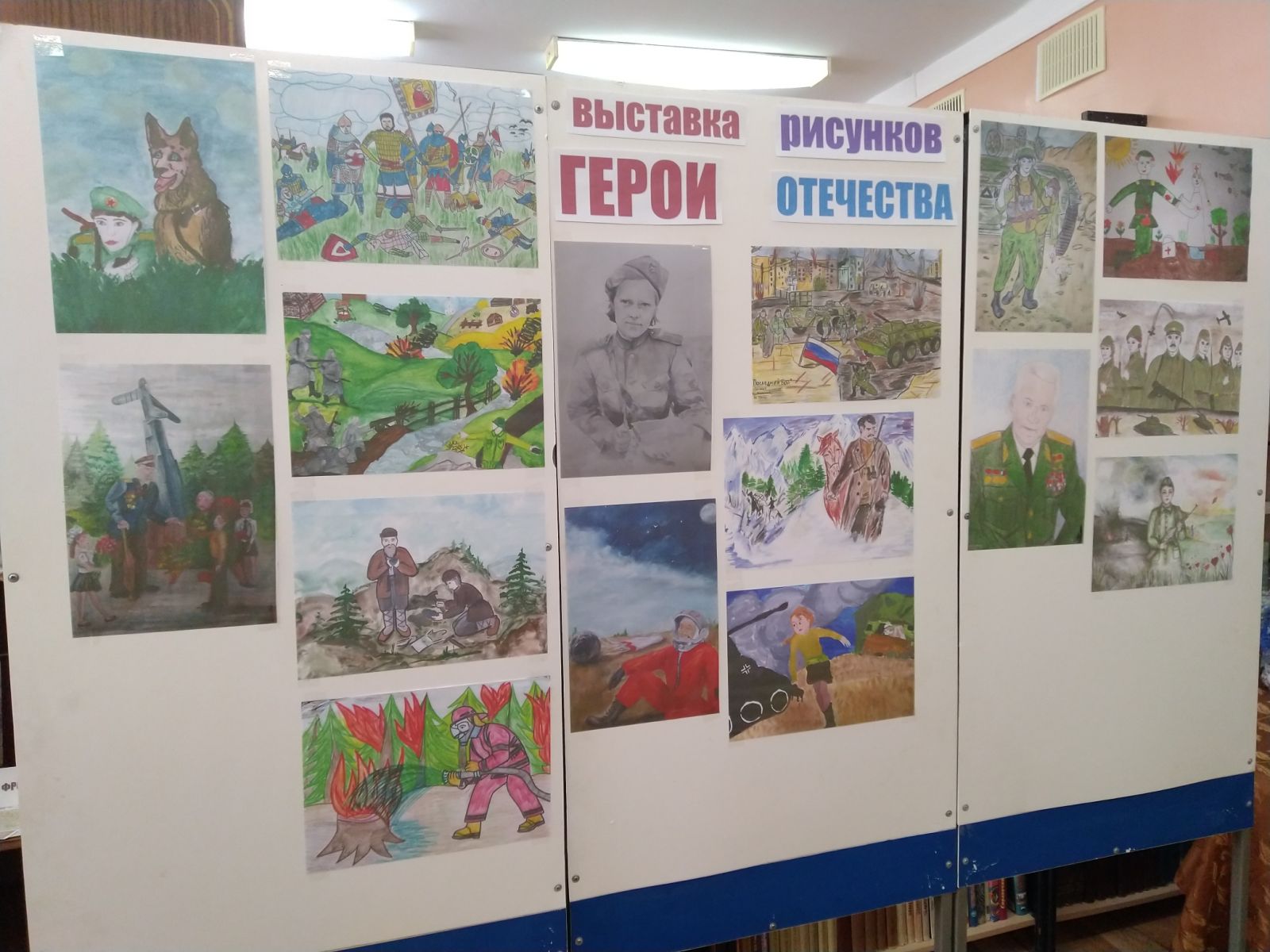 Место, где мы родились и живем, называется Родина, Отечество, Россия. Во все времена люди гордились и прославляли, любили и оберегали свою Родину, защищали её от врагов. Защита Родины всегда была и остается благородным делом. История нашего Отечества знает много беспримерных подвигов граждан в годы войны и в мирное время.Школьный библиотекарь подготовила тематическую выставку детского рисунка «Герои Отечества».Цель данной выставки: расширить знания детей о героических страницах истории нашего Отечества, воспитывать чувства гордости и уважения к историческому прошлому России. -