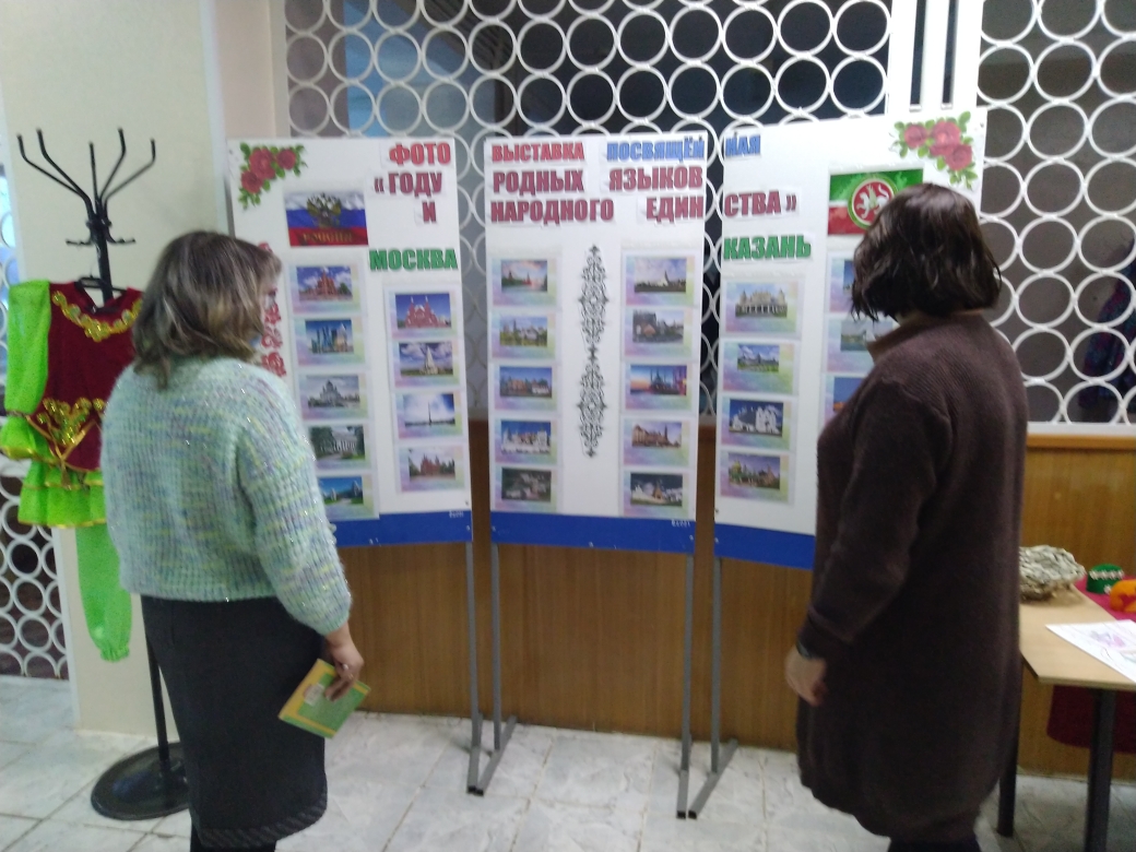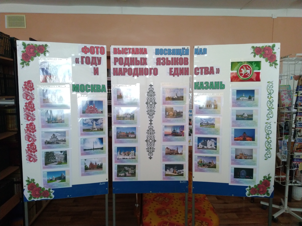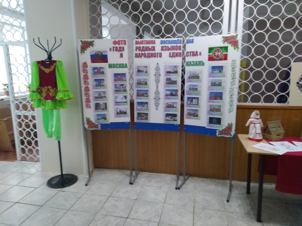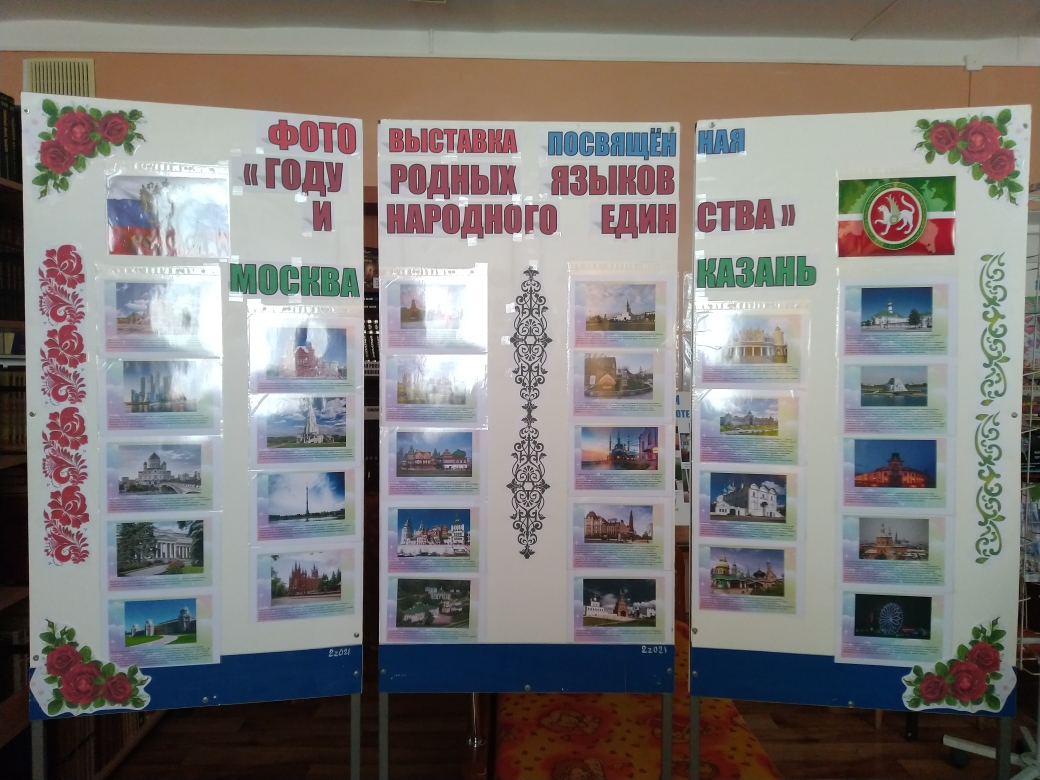 Татарстан Республикасында яшәүче халыкларның туган телләрен, мәдәниятен һәм традицияләрен саклау һәм үстерү, республиканың күпмилләтле халкының бердәмлеген ныгыту максатыннан, 2021 ел туган телләр һәм Халыклар бердәмлеге елы дип игълан ителде. Шул уңайдан мәктәп китапханәчесе Андреева Л.М. туган тел һәм Халык бердәмлеге елына багышланган фотокүргәзмә оештырды. Күргәзмәдә Ватаныбызның истәлекле урыннары белән фотолар урын алган. Сез илебез башкаласы һәм республикабыз башкаласы буйлап виртуаль экскурсиядә була аласыз. Фотокүргәзмә күпмилләтле илебезнең матурлыгын, туган урыннарга мәхәббәтен һәм үз халкы өчен горурлыгын гәүдәләндерде. Күргәзмәдә күп кенә башка телләр арасында Туган тел нинди урын алып тора, дуслык һәм бердәмлек көче сурәтләнгән.В целях сохранения и развития родных языков, культуры и традиций представителей народов, проживающих в РТ, укрепления единства многонационального народа республики, 2021 год объявлен Годом родных языков и народного единства. В связи с этим в школьный библиотекарь Андреева Л. М. организовала фотовыставку посвященную Году родного языка и народного единства. На выставке представлены фотографии с достопримечательностями нашей Родины. Вы можете побывать на виртуальной экскурсии по столице нашей страны и по столице нашей республики. Фотовыставка воплотила красоту нашей многонациональной страны, любовь к родным местам, и гордость за свой народ. На выставке показано какое место занимает родной язык среди множества других языков, изображена сила дружбы и сплоченности. -