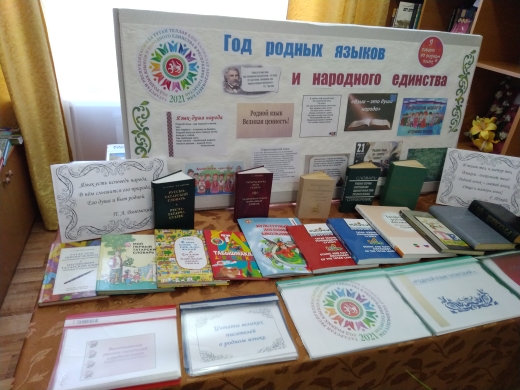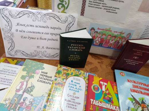 Һәр халыкның теле уникаль һәм милләтнең менталитетын һәм традицияләрен чагылдыручы үзенчәлекле чагылышы бар. Тел формалаштыра аңы кеше, тел белү ярдәм итә киңәйтергә кругозор, глубже проникнуть мәдәнияткә башка ил. Барлык телләрне тану һәм хөрмәт итү бөтен дөньяда тынычлыкны саклап калырга мөмкинлек бирә.Мәктәп китапханәсендә Туган телләр һәм Халыклар бердәмлеге елына багышланган күргәзмә оештырылды. Күргәзмәдә вакытлы басмалардан китаплар һәм мәкаләләр тәкъдим ителгән.Язык каждого народа уникален и имеет самобытное выражение, отражающие менталитет и традиции нации. Язык формирует сознание человека, знание языка помогает расширить кругозор, глубже проникнуть в культуру другой страны. Признание и уважение всех языков позволяет сохранить мир во всем мире.В школьной библиотеке оформлена выставка, посвященная Году родных языков и народного единства. На выставке представлены книги и статьи из периодических изданий. -