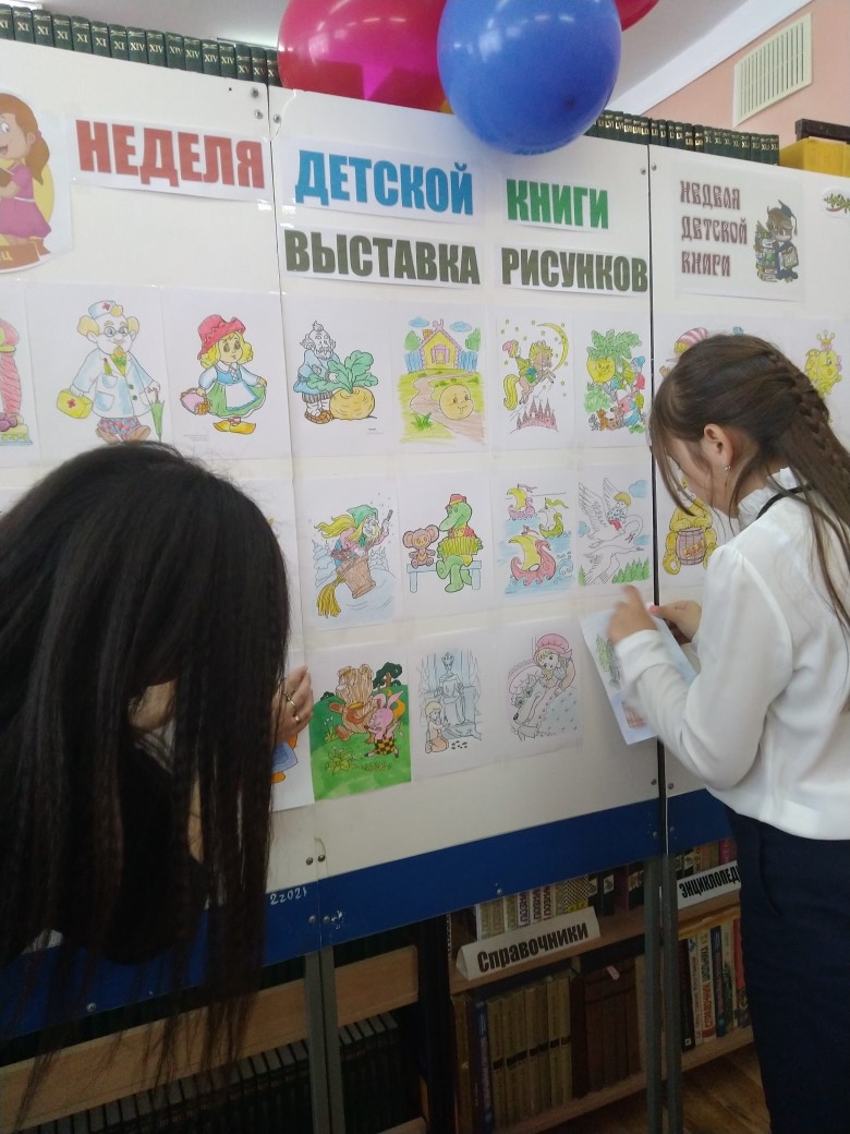 В рамках Всероссийской Недели детской книги в школьной библиотеке проходит выставка рисунков «Мой любимый литературный герой». Ребята с удовольствием приносят свои рисунки на выставку, самостоятельно вывешивают на общий стенд выставки. -