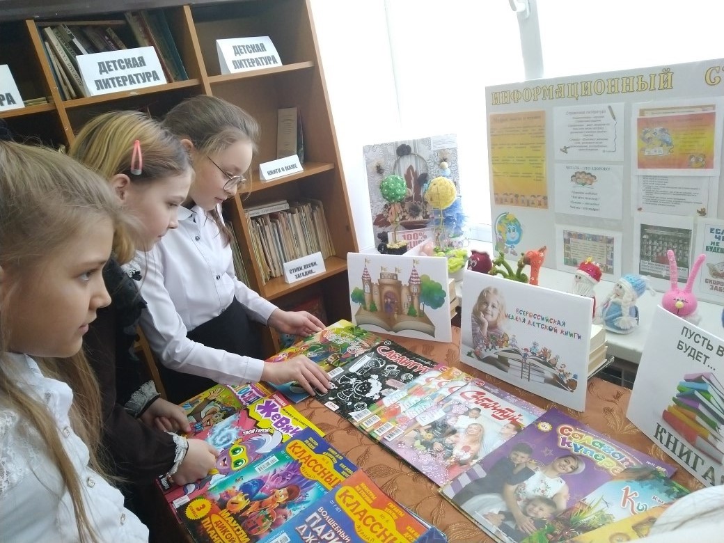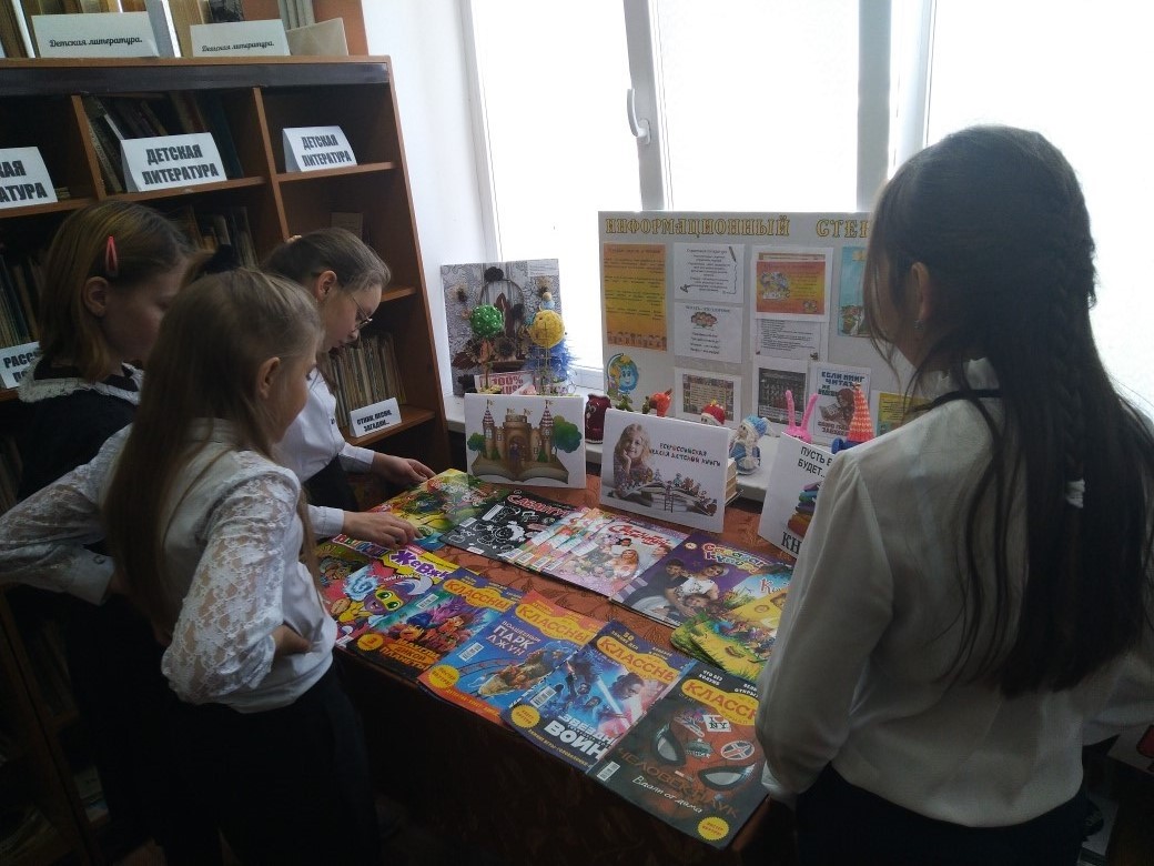 В рамках Недели детской книги в школьной библиотеке оформлена иллюстрированная выставка «Журнальная карусель – радость для всех!» Ребята узнали для себя много интересного, познакомились с новыми журналами. Из журналов дети узнают много интересного о природе, истории нашей страны и других государств, искусстве, выдающихся людях. В них содержатся задания, направленные на развитие памяти, мышления, воображения, внимания. Репертуар детских и подростковых журналов сейчас достаточно интересен и разнообразен. Почти вся детская газетно-журнальная продукция прекрасно иллюстрирована, издается на хорошей бумаге. Молодое поколение часто предпочитает книге журнал, так как разнообразное жанровое содержание и хороший информационный материал удовлетворяют их вкусам и интересам. -
