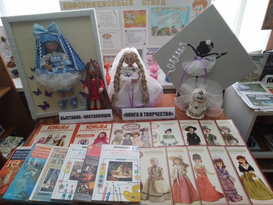 Библиотечная выставка прочно занимает свое место в системе информационных коммуникаций, выходя при этом за рамки чисто библиотечной специфики. Время меняет отношение к выставке и выставочной деятельности в библиотеке, диктует новые форматы.Сегодня появляется все больше интерактивных экспозиций, которые помогают ребенку или подростку оказаться в увлекательном познавательном пространстве, в котором можно поиграть, выполнить творческое задание, послушать интересный рассказ.Книжная инсталляция - это пространственная композиция, созданная из книжных изданий, различных материалов и форм. Вокруг такой выставки можно выстроить самую разную работу.Цели и задачи данной выставки:- Популяризация книги и чтения;- Расширение представлений читателей о книжном сюжете;- Обновление традиционного библиотечного пространства путем оформления необычной экспозиции.Разделы выставки «И … оживают куклы», «Кукольные истории» и «Там, где делают кукол» раскрывают историю и значимость коллекционных кукол, в журналах предлагают инструкции для изготовления различных типов кукол, с помощью которых можно составить широкий репертуар домашней коллекции эксклюзивных моделей. -
