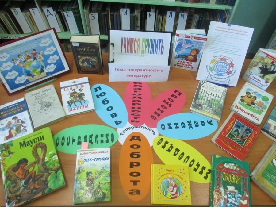 «Теперь, когда мы научились летать по воздуху, как птицы, плавать под водой, как рыбы, нам не хватает только одного: научиться жить на земле, как люди.» (Б. Шоу)Именно этому искусству - жить с людьми и среди людей посвящен День толерантности, который во всем мире отмечают в ноябре.Международный день толерантности ежегодно отмечается 16 ноября. В эти ноябрьские дни в школьной библиотеке для читателей оформлена книжная выставка «Мы разные, но мы вместе», потому что вопрос о толерантности сейчас в центре внимания всего мира.Понятие «толерантность» воспринималось не только детьми, но и взрослыми по-разному, но библиотекари постарались дать понять подросткам, что такое толерантность и услышать от них ответ, а как они понимают это слово. В ходе беседы разобрали правила, которыми должен обладать толерантный человек: любовь к ближнему, сострадание, уважение, доброта души, дружба, терпимость, милосердие, умение принимать других такими, какие они есть. -